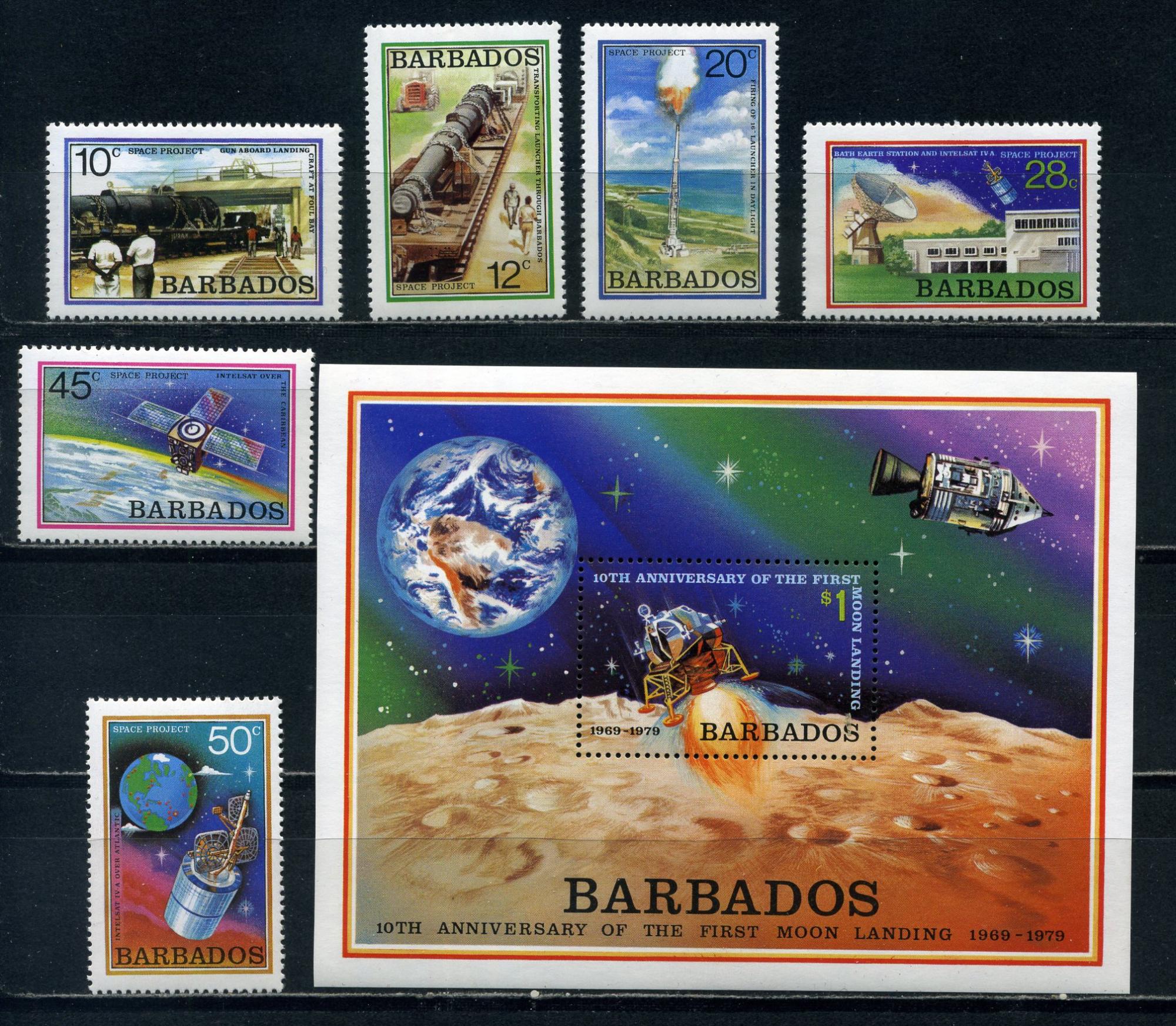 Почтовые марки. Барбадос. 1979г. Космос. Спутники. №482-487. Блок №13.