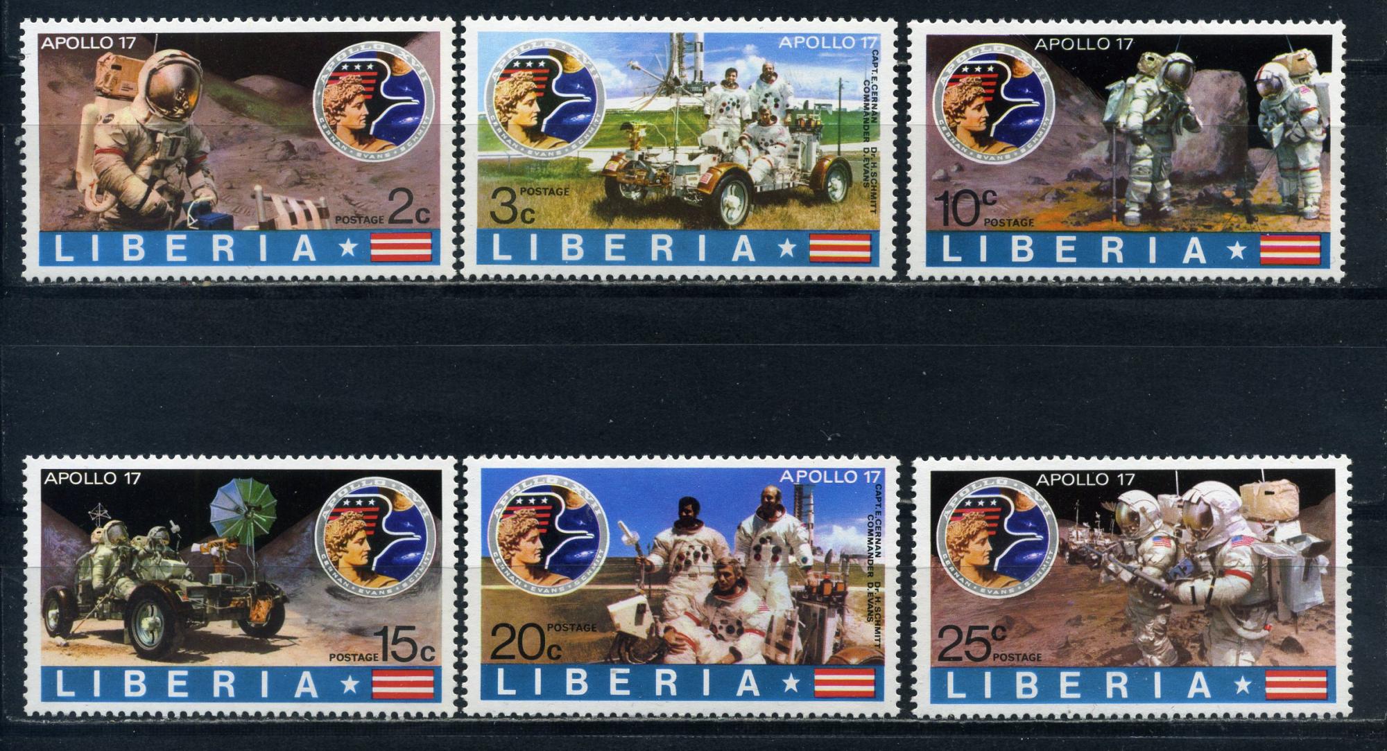Почтовые марки. Либерия. 1973г. Космос. Аполлон-17. №862-867.