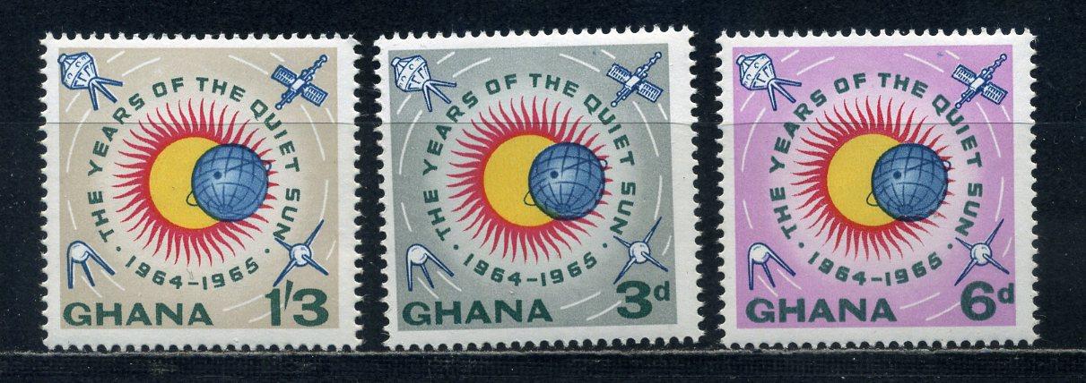 Почтовые марки. Гана. 1964г. Год спокойного Солнца. Второй вып. №185-187 (Мi : 13.00 Евро).