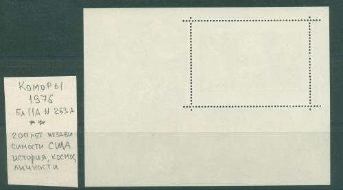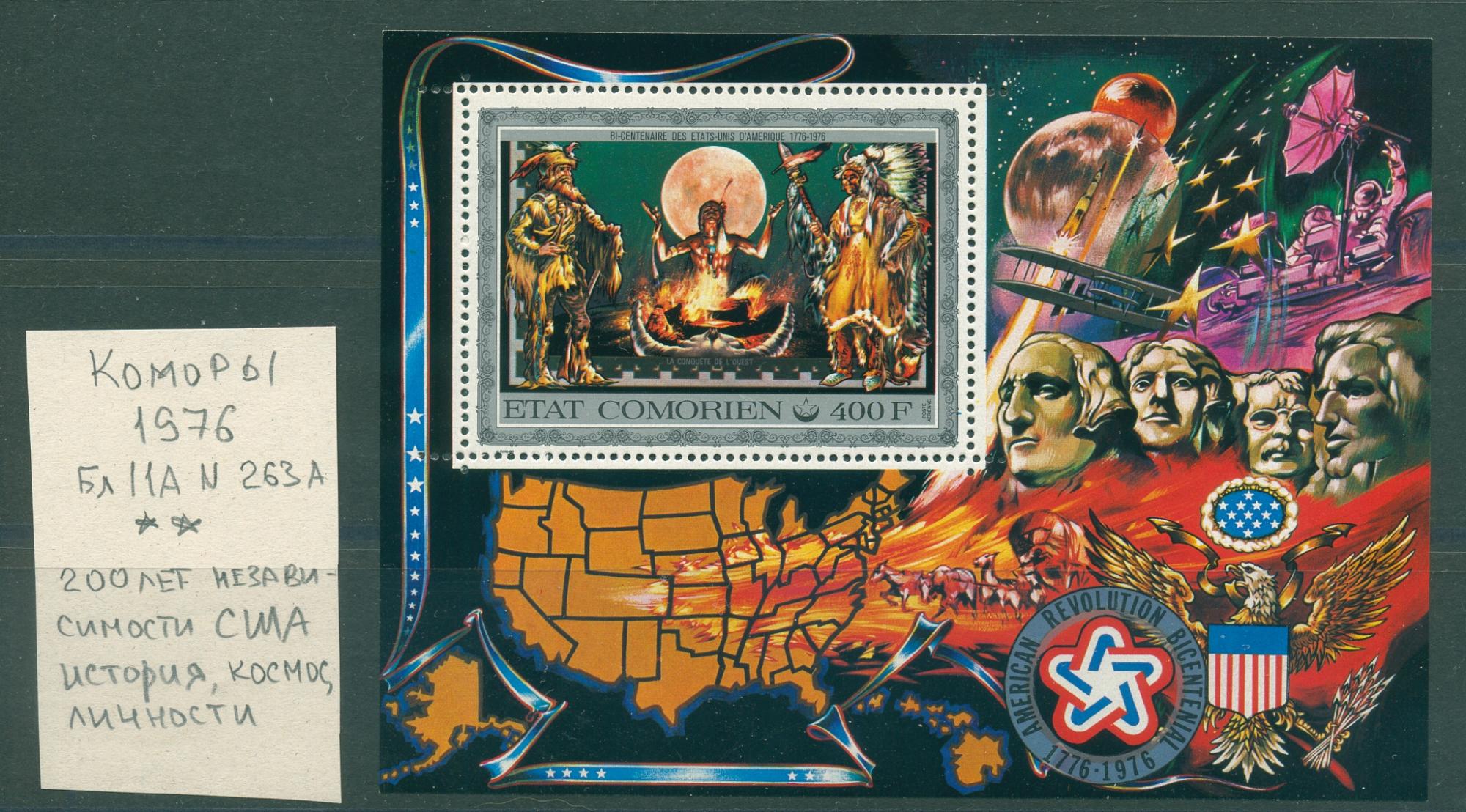 Почтовые марки. Коморы. 1976г. 200 лет независимости США. Блок №11А.