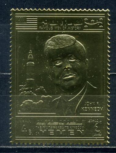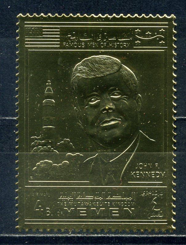 Почтовые марки. Йемен. 1969г. Космос. Кеннеди. Фольга. Золото. №852А.