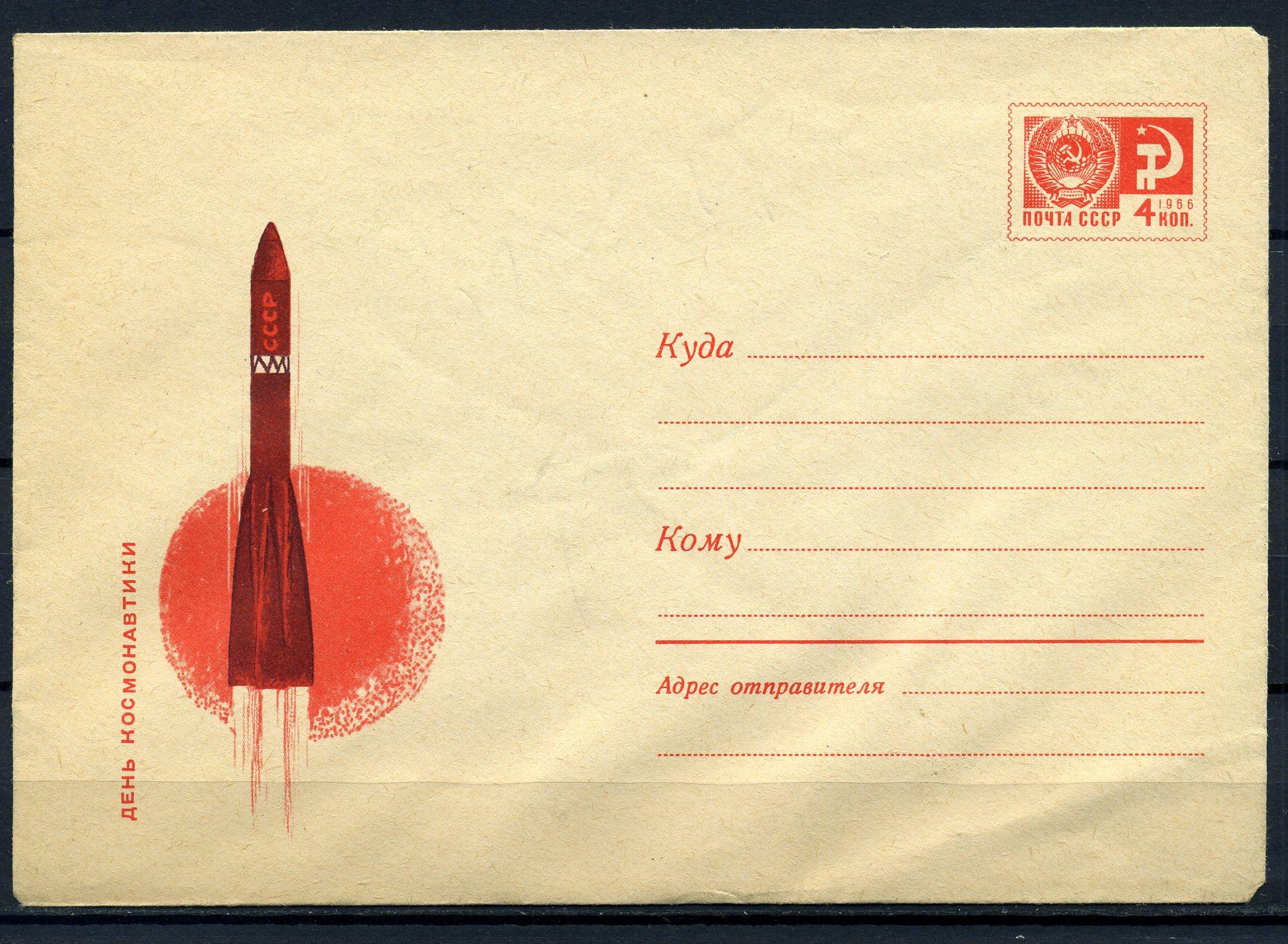 Почтовый конверт ХМК. СССР 1968г. День космонавтики. (кат. 300р). КО