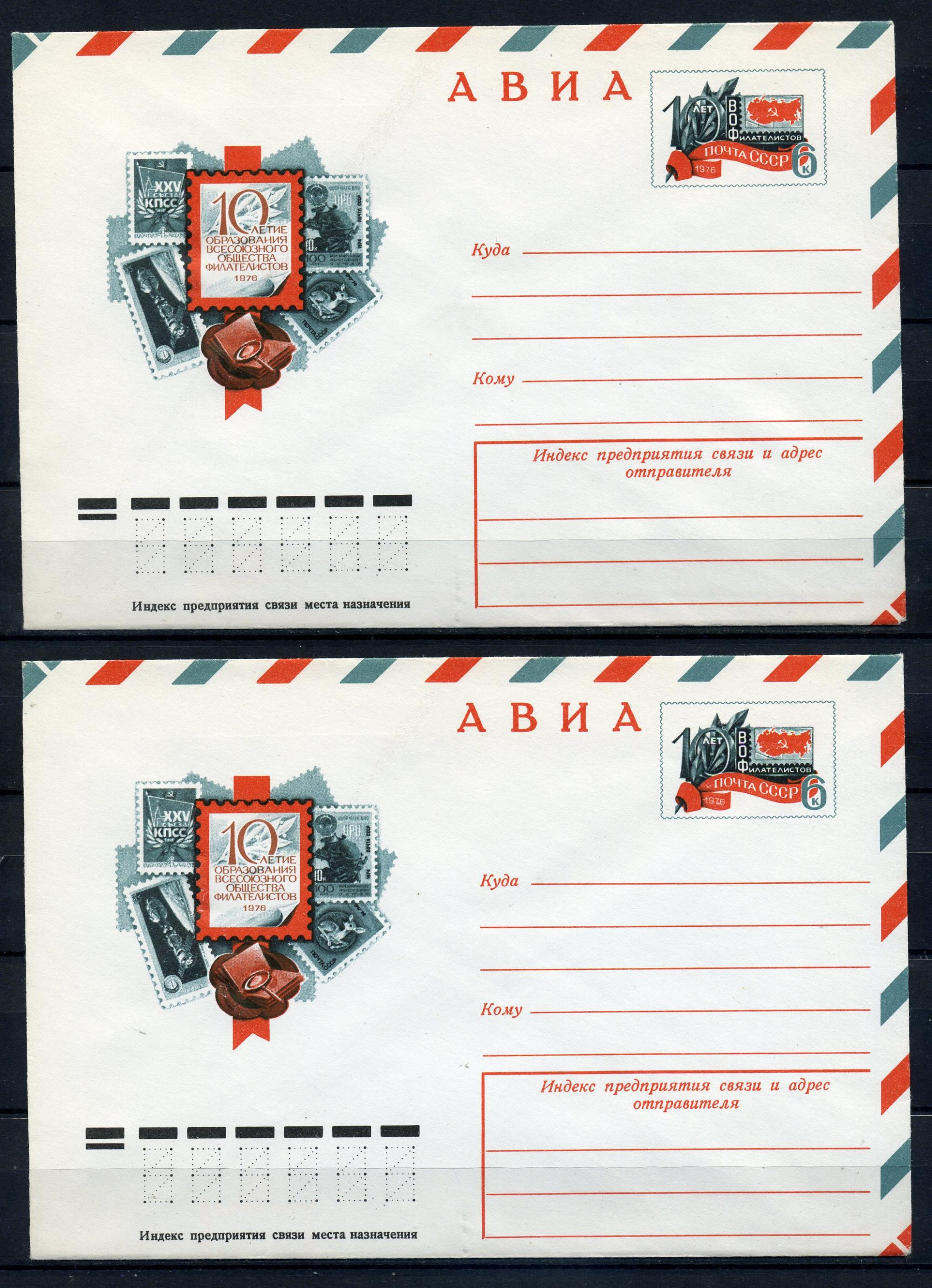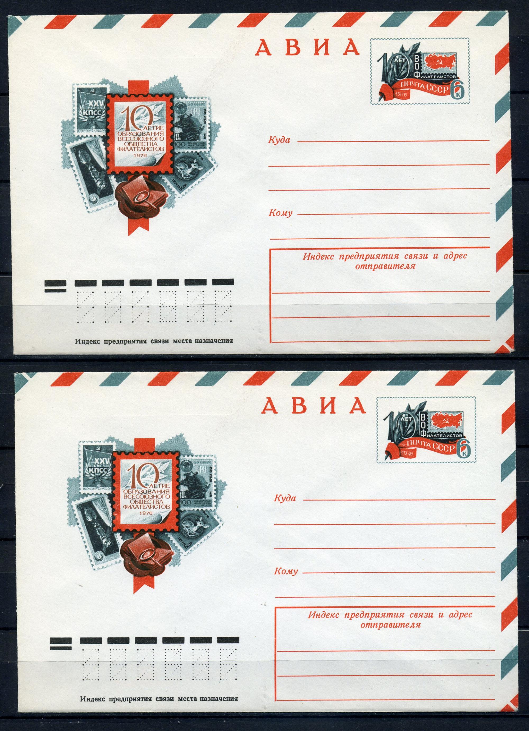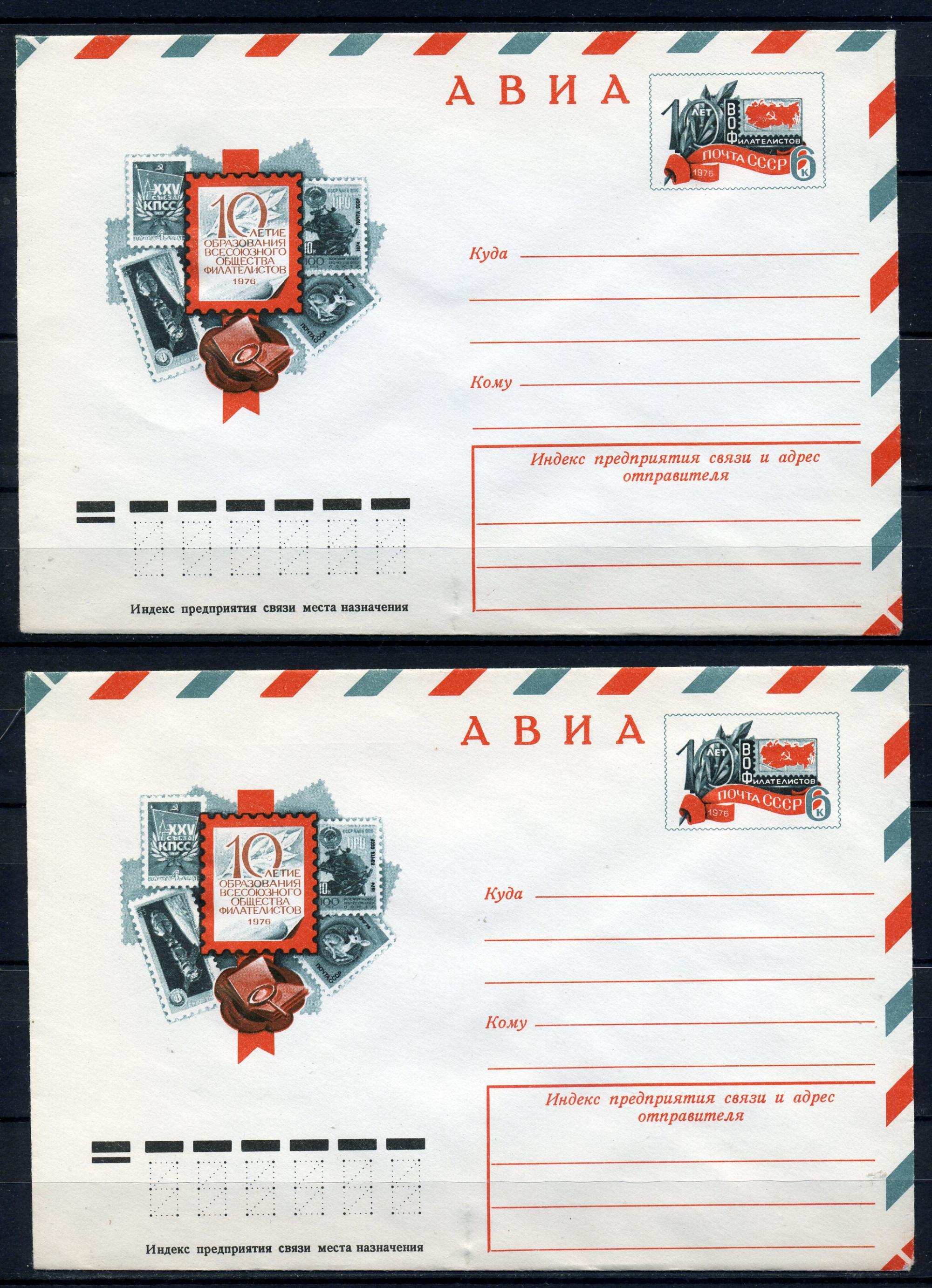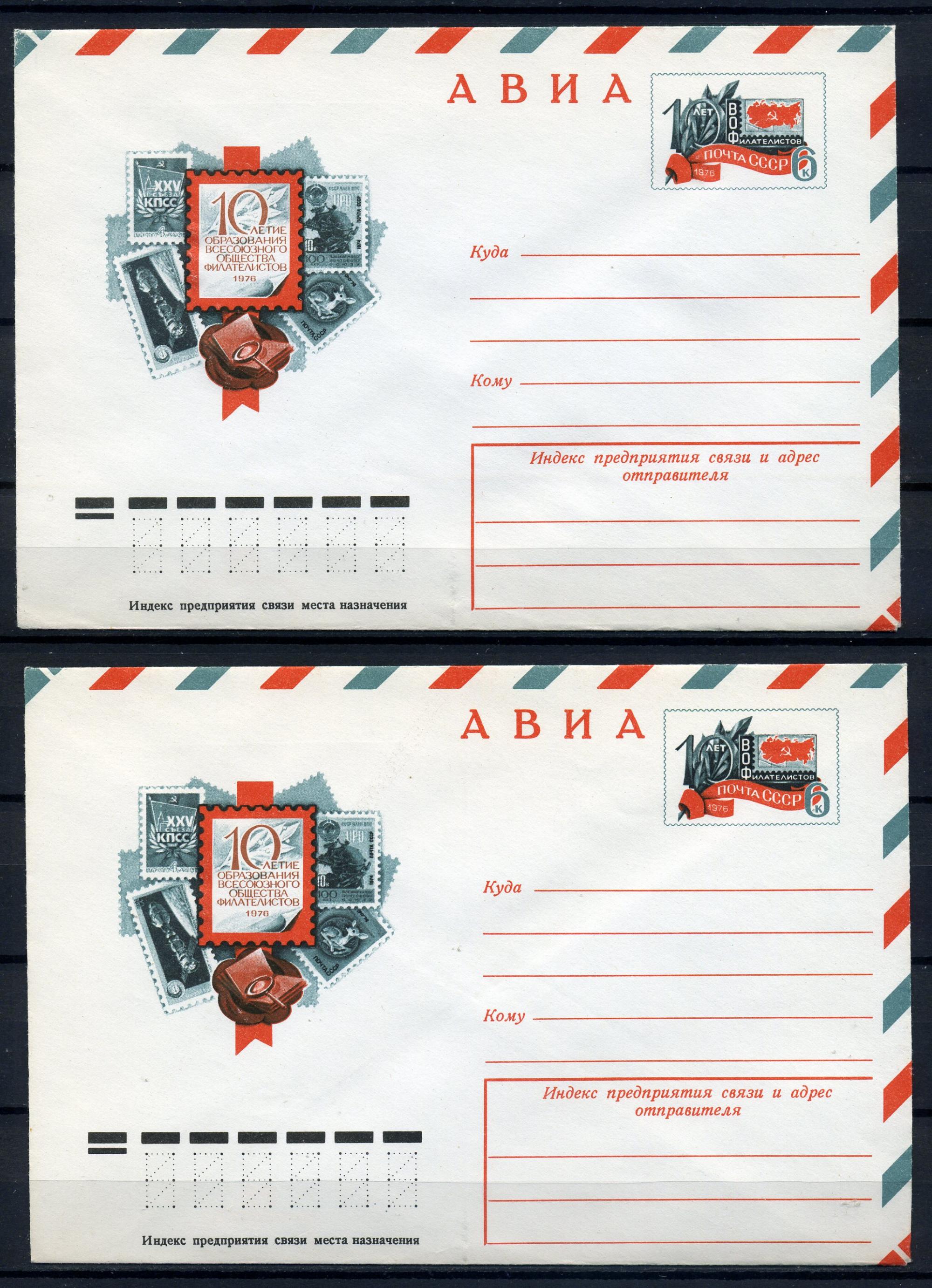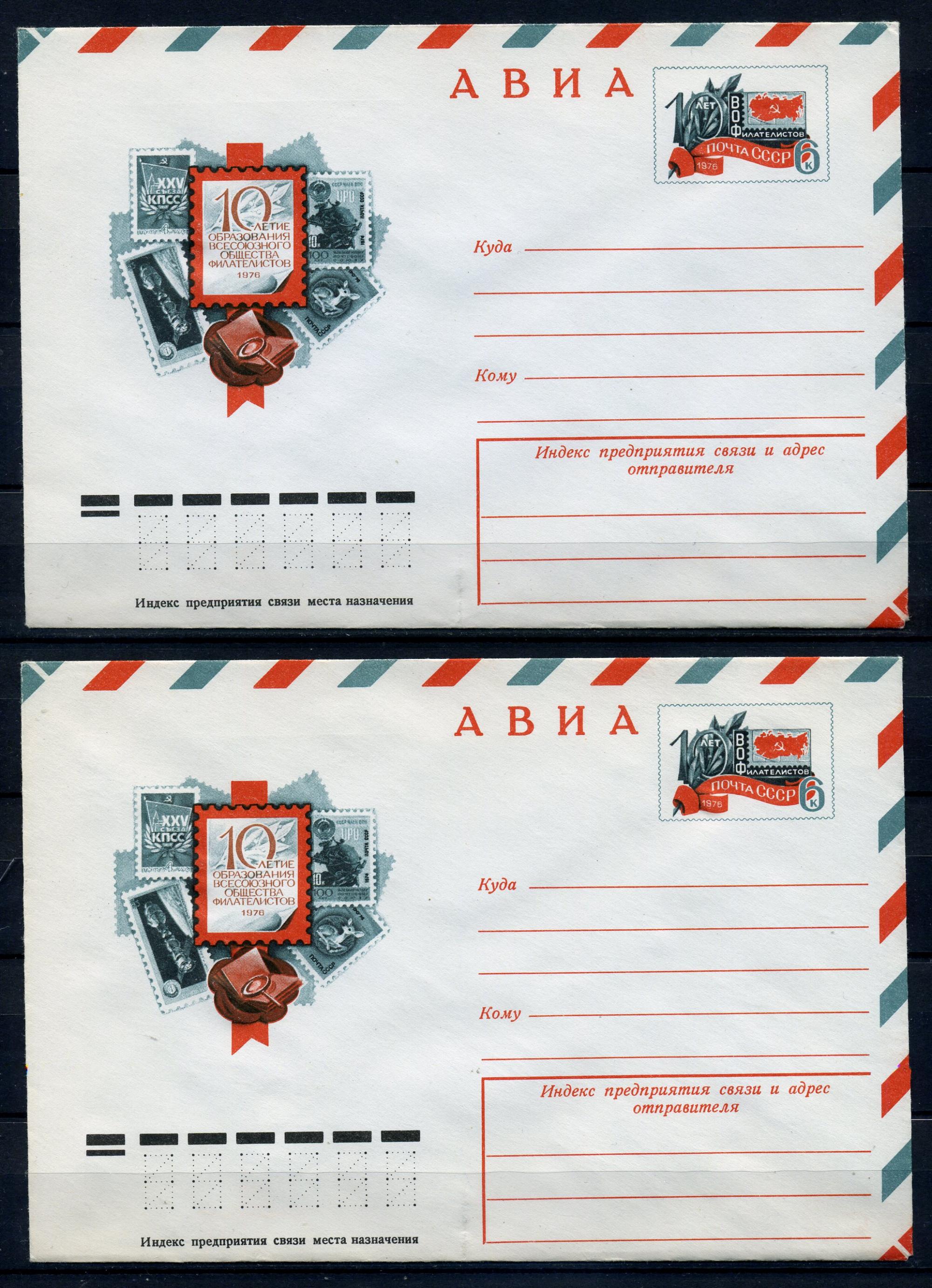 Почтовые конверты с ОМ АВИА. СССР 1976г. 10 лет образования ВОФ. 10 шт. КО.