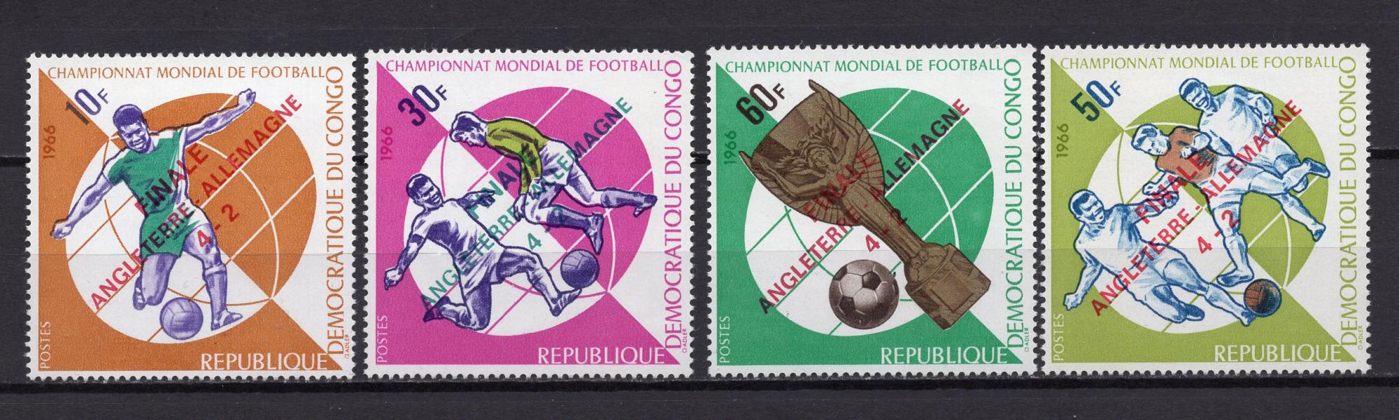 Почтовые марки. Конго, 1966 г. Футбол. Надпечатка. Некомплект. Футбол. №280 etc.