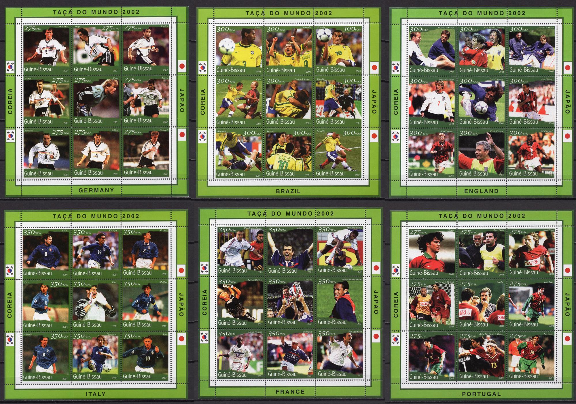 Почтовые марки. Гвинея-Биссау, 2001 г. Футбол. ЧМ. Комплект. МЛ. №1343-1396. (65,0 е)