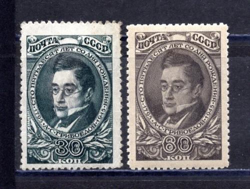 Почтовые марки. СССР. 1945г. Грибоедов. №958-959.