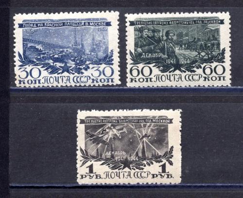 Почтовые марки. СССР. 1945г. Разгром Фашистов под Москвой. №973-975.