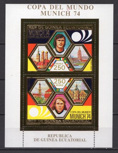 Почтовые марки. Экв. Гвинея, 1974 г. Футбол. Фольга. Золото. Бл. 119