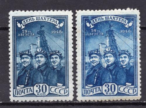 Почтовые марки. СССР, 1948 г. День шахтёра. №1301ВР, 1301ГР.