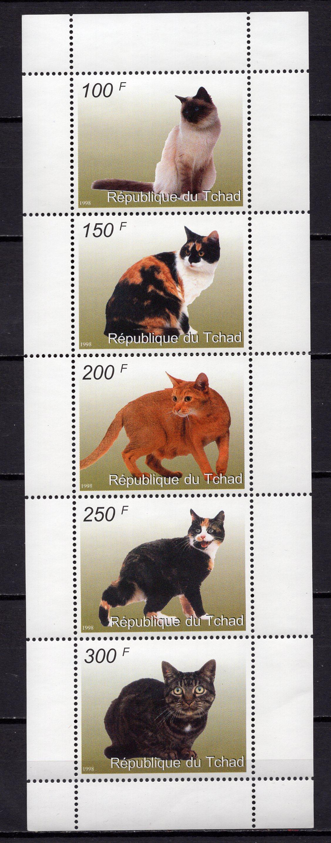 Почтовые марки. Чад, 1998 г. Кошки. (Некатал.)
