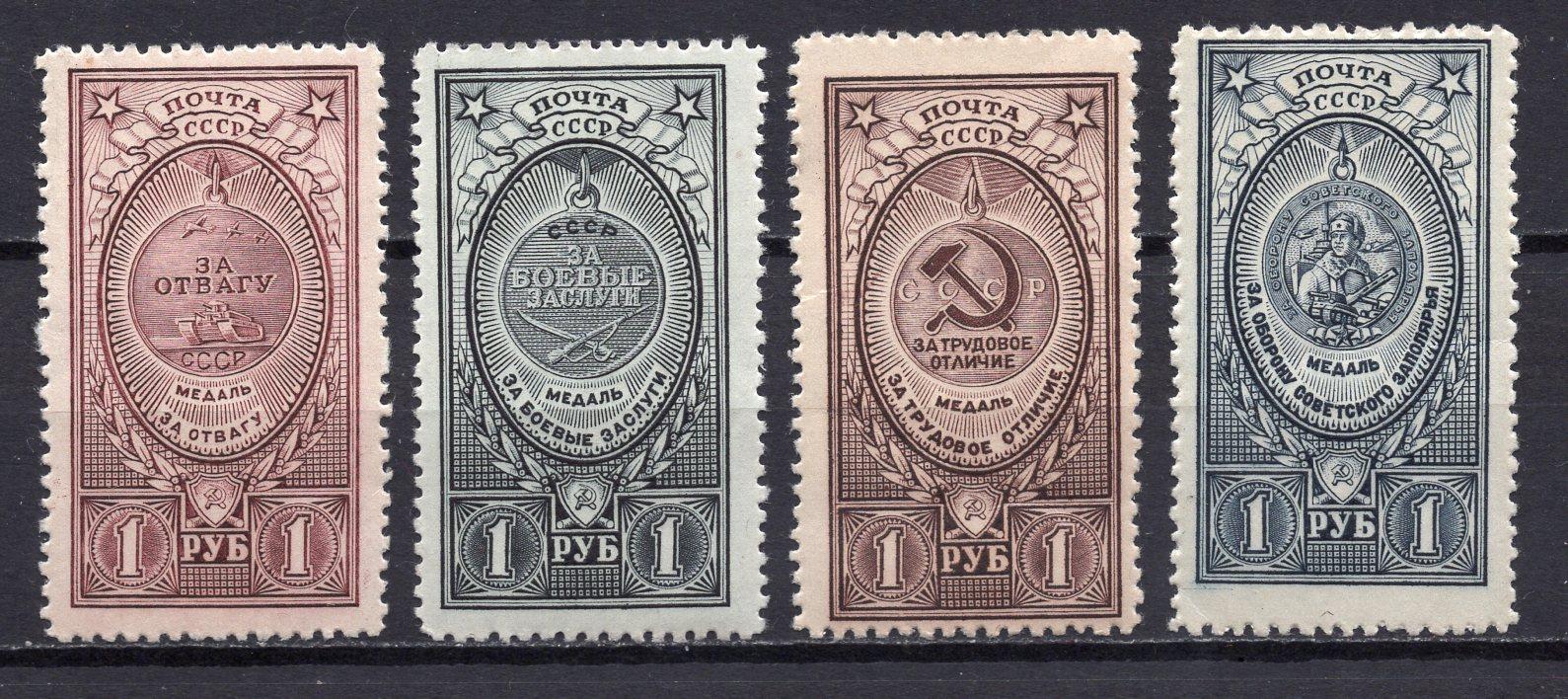 Почтовые марки. СССР, 1946 г. Медали. Металлография. №1064, 1065, 1067, 1070. (1250 руб.)