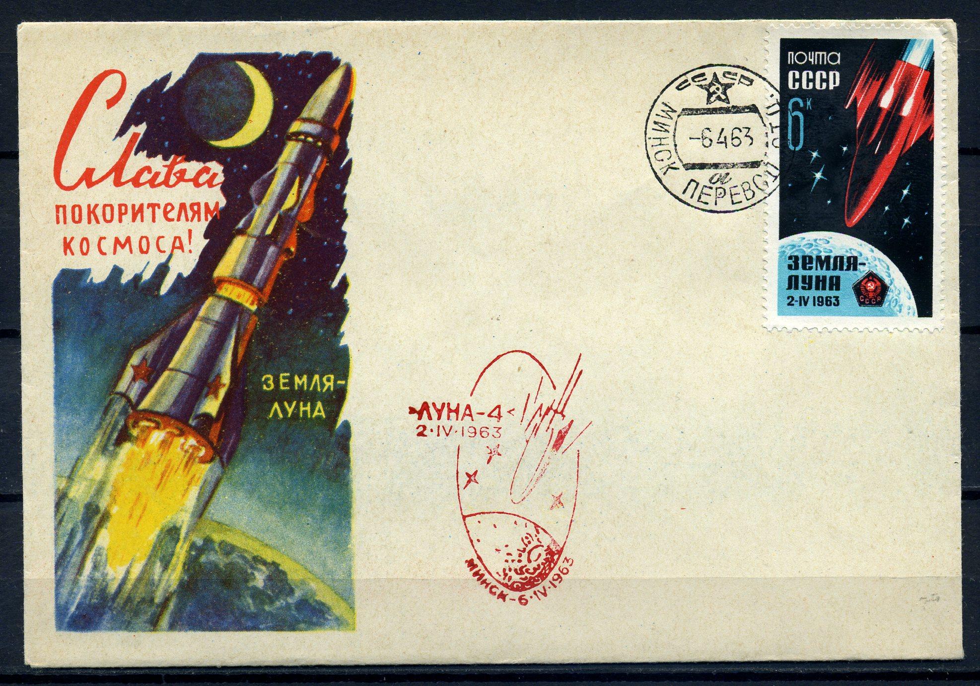 Конверт с маркой и СГ. БССР 1963 г. "Луна-4". Тир. 3000 экз. КО.