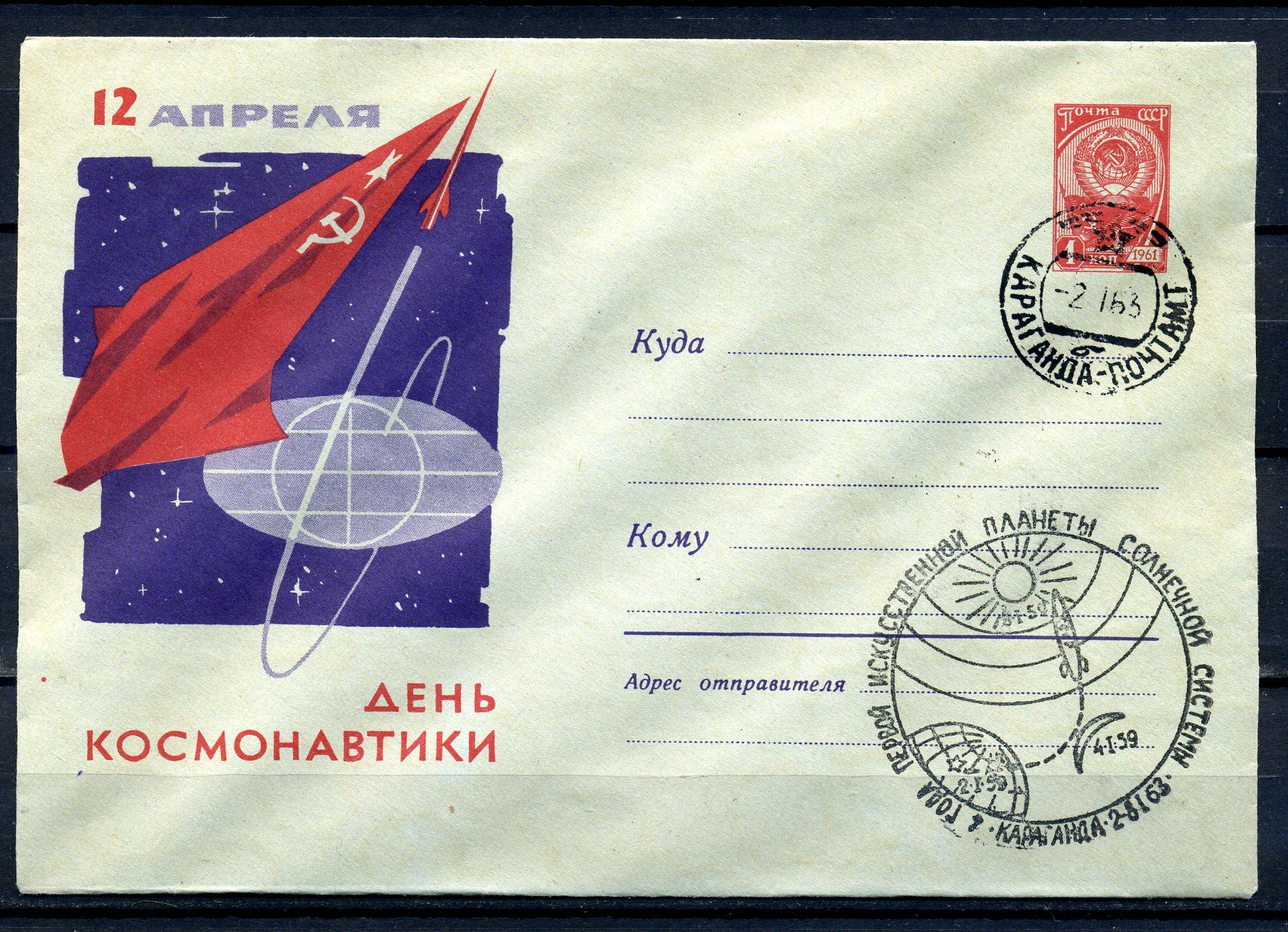 ХМК со СГ. СССР 1962 г. День космонавтики. СГ-4 года 1-ой искусственной плданеты солнечной системы. КЗ.