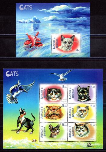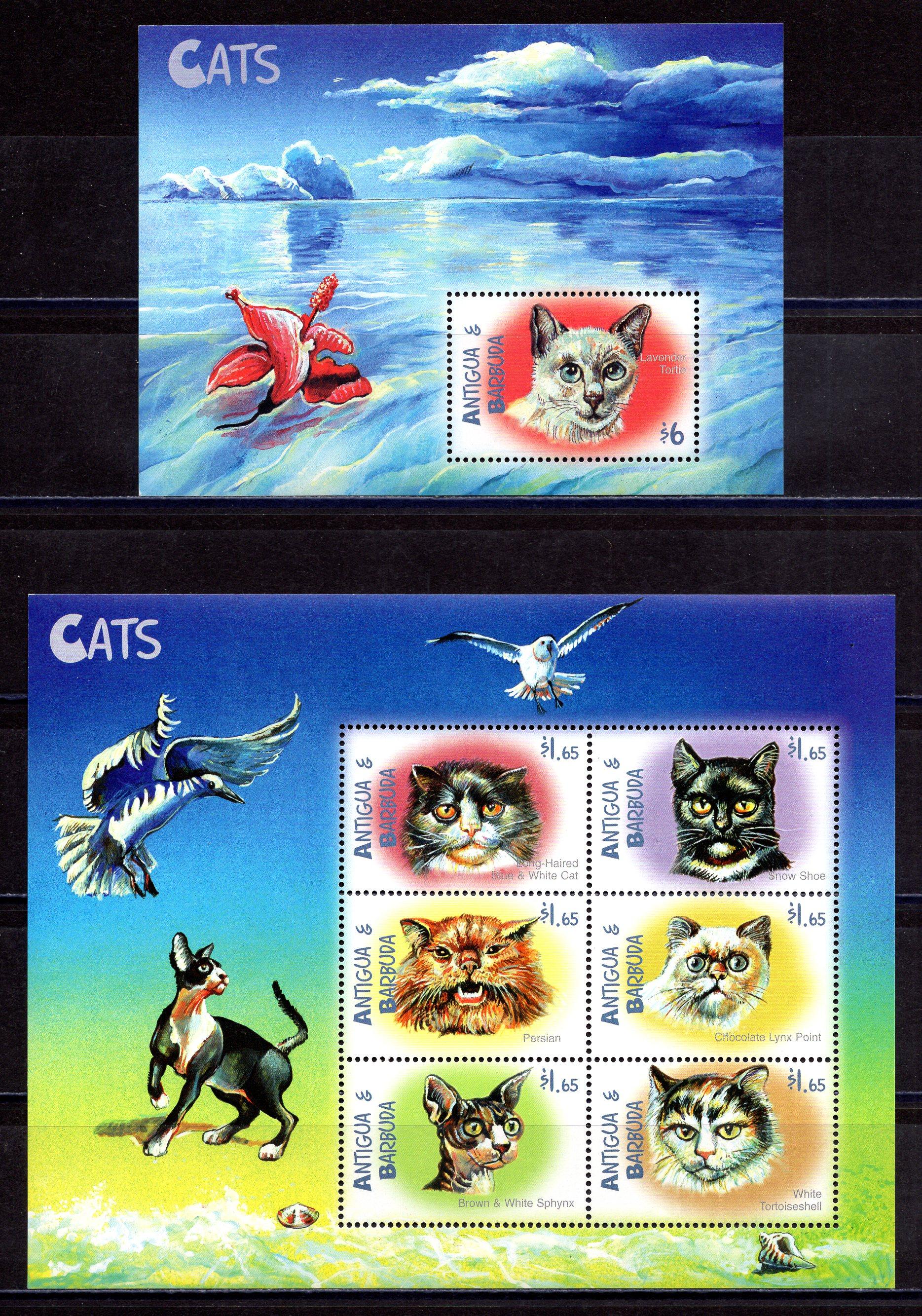 Почтовые марки. Антигуа. 2000г. Кошки. №3142-3147, Блок №454.