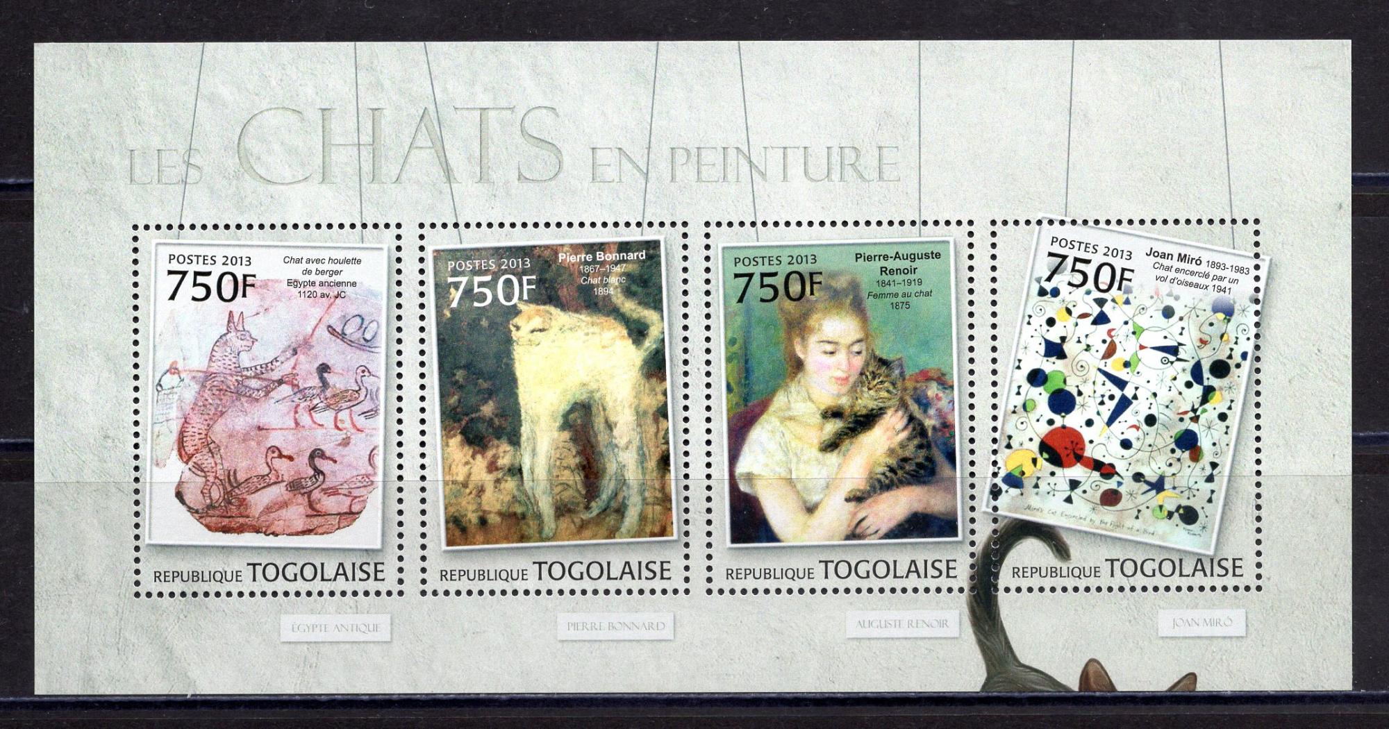 Почтовые марки. Того. 2013г. Кошки в Живописи. Ренуар. №4706-4709.
