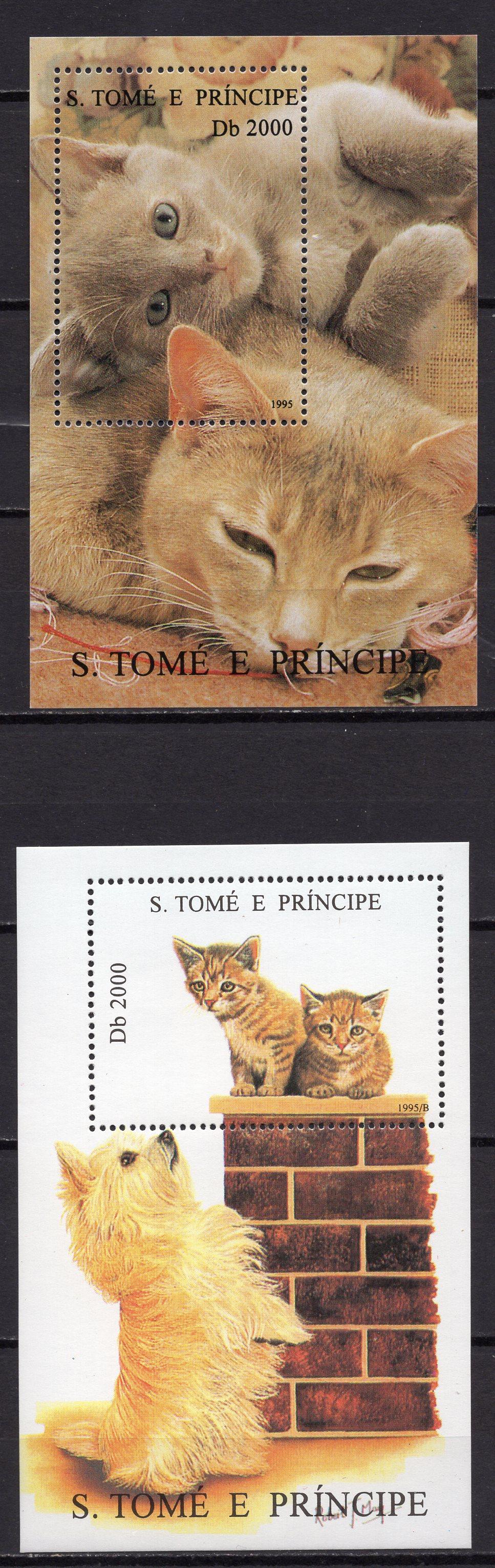 Почтовые марки. Сан-Томе и Принсипи, 1995 г. Кошки. Бл. 332-333.