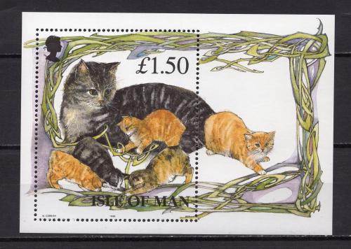 Почтовые марки. О-в Мэн, 1996 г. Кошка с котятами. Бл. 25