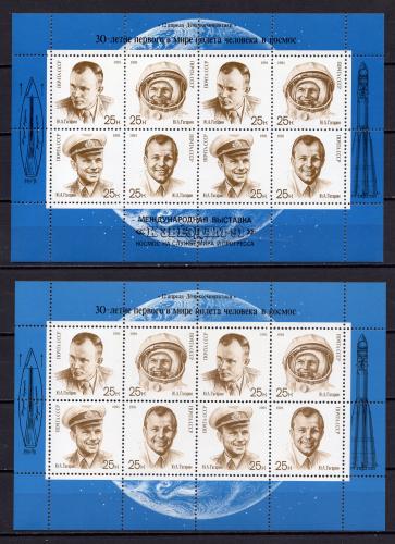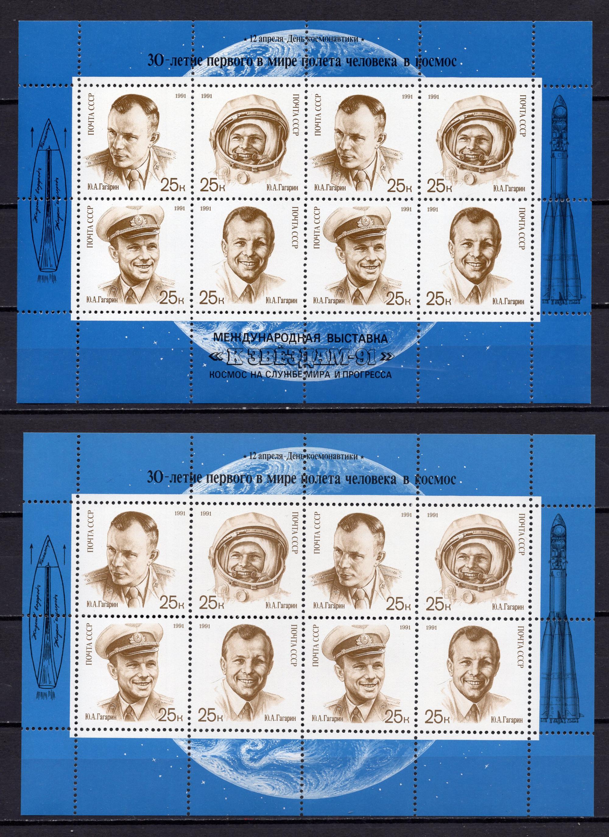 Почтовые марки. СССР 1991г. День космонавтики. (Гагарин) № 6306-6309. МЛ + МЛ с надпеч.