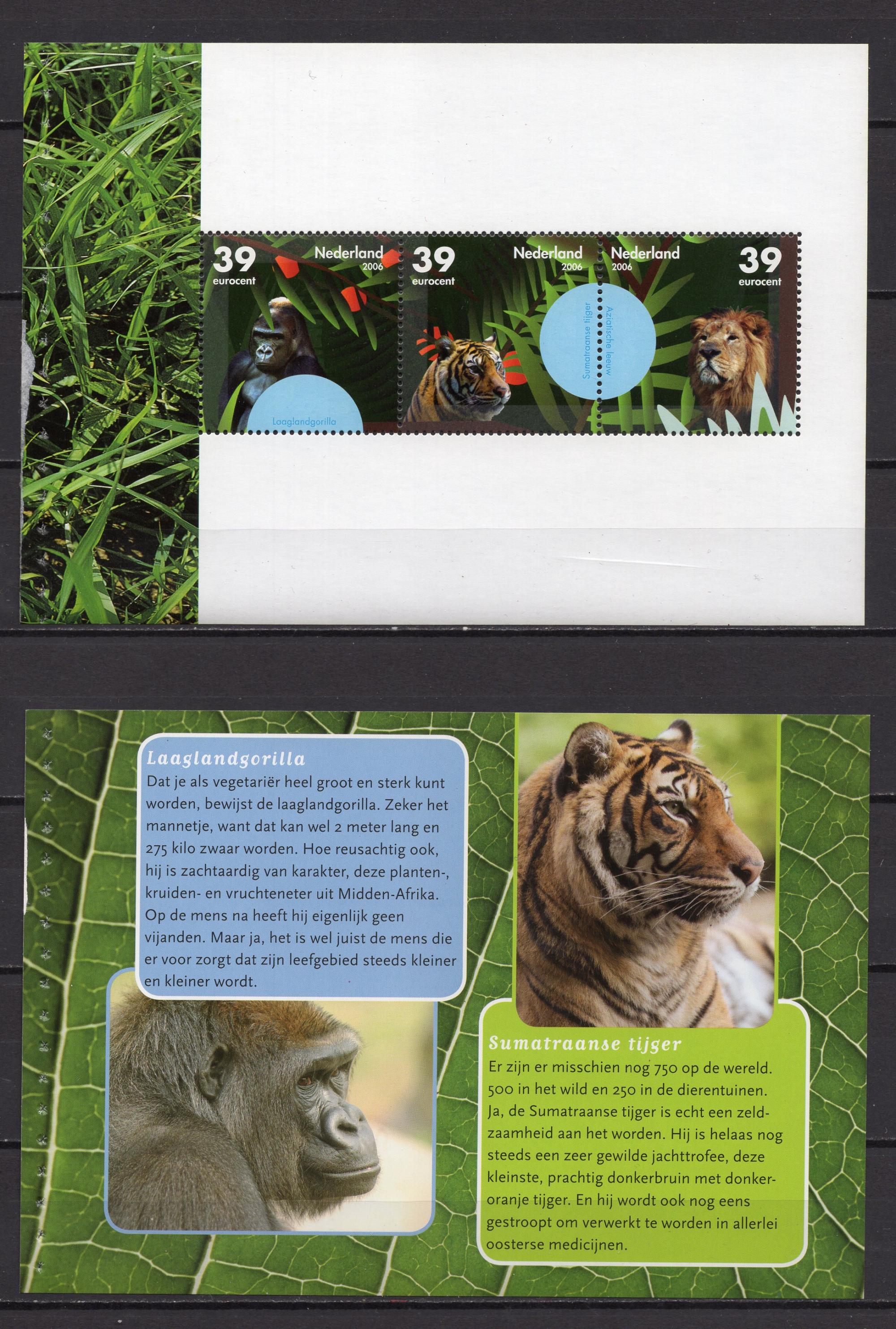 Почтовые марки. Нидерланды, 2006 г. Горилла. Львы и тигры. Люкс-блок. №2427-2429.
