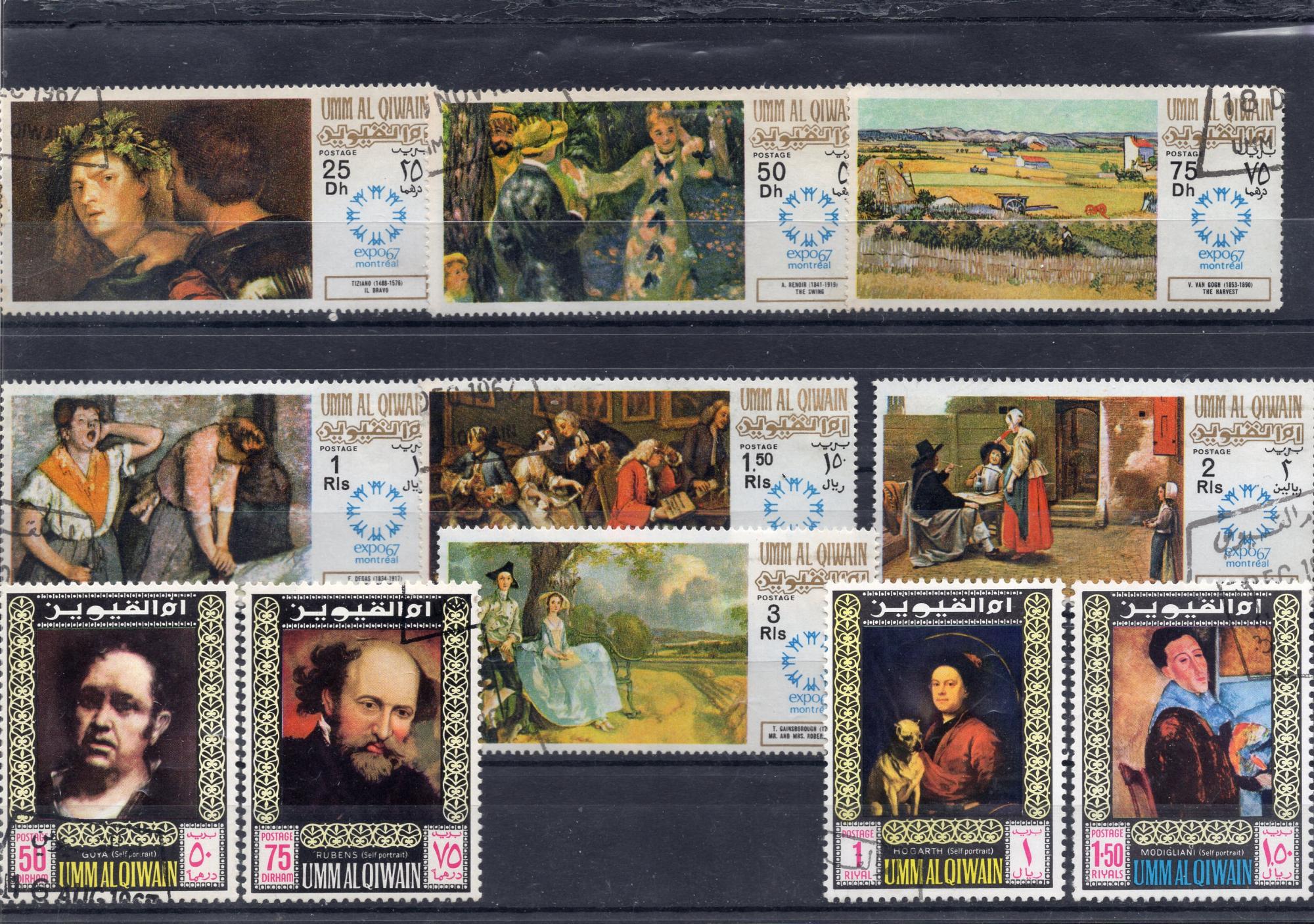 Почтовые марки. Эмират Ум-Эль-Кайвайн, 1967 г. Сборный лот. Живопись.