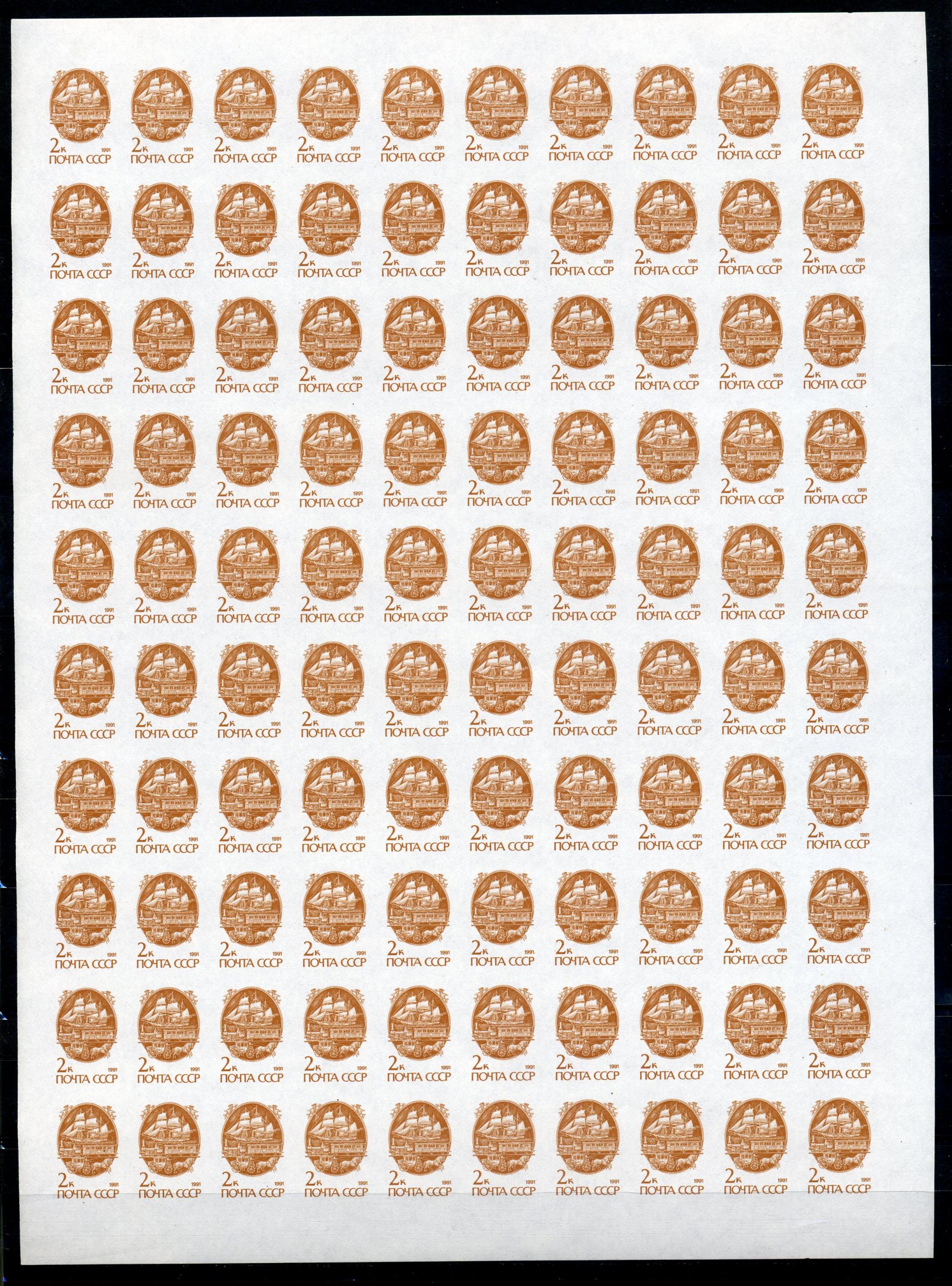 Почтовые марки. СССР 1991 г. Стандарт. № 6298Б. БЕЗЗУБЦ. ЛИСТ.