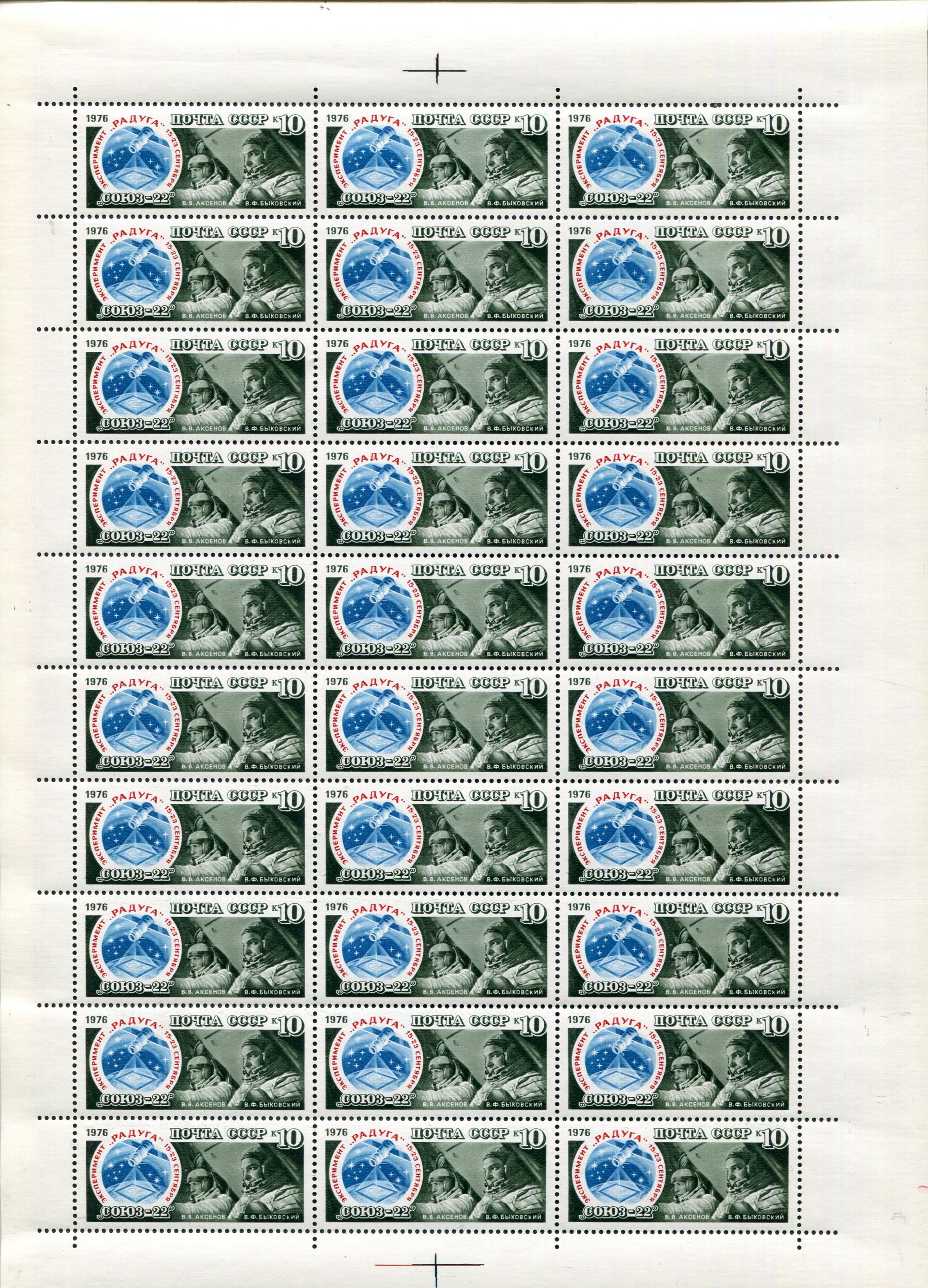 Почтовые марки. СССР. 1976. Космос. Союз-22. ЛИСТ. № 4667