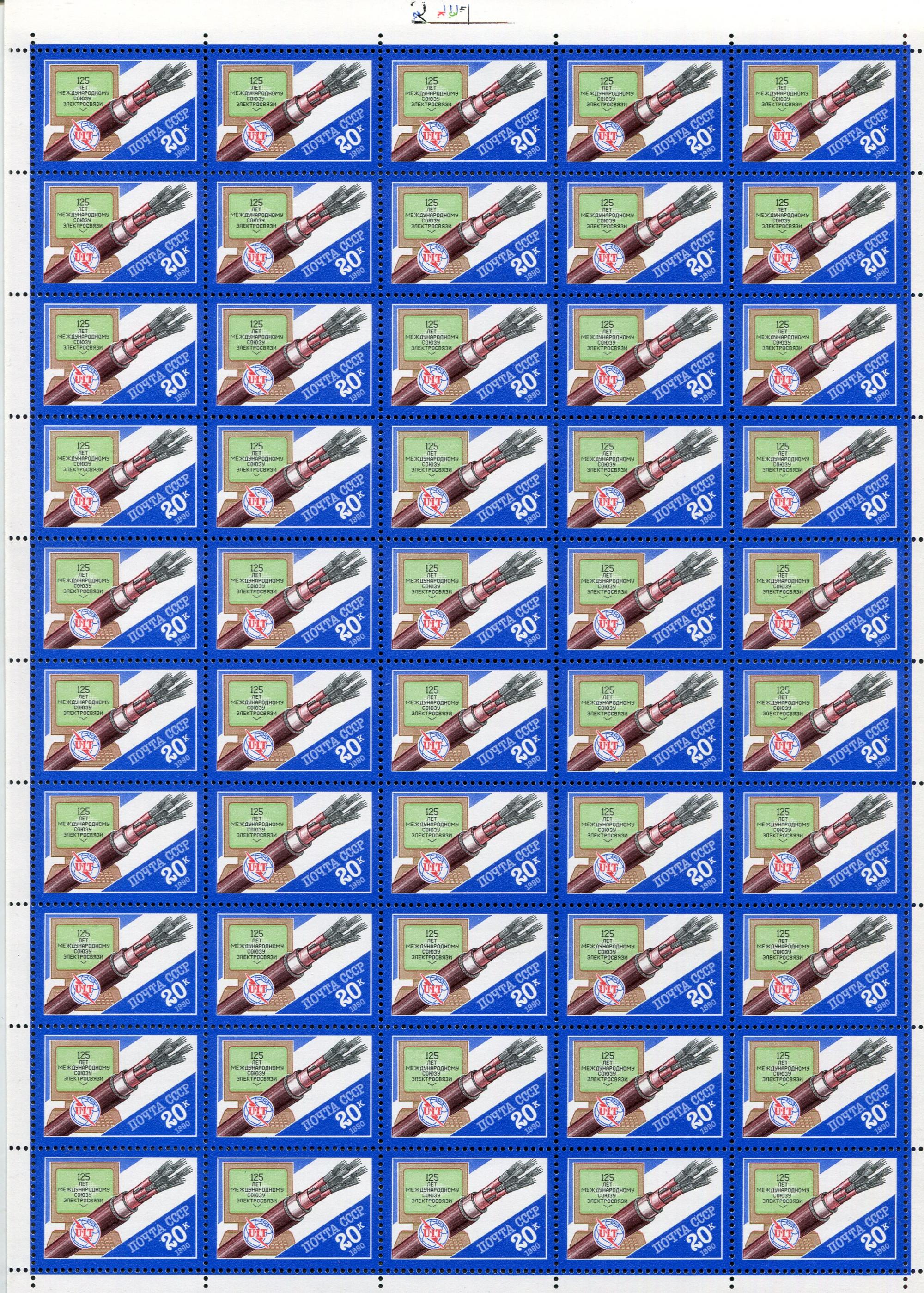 Почтовые марки. СССР. 1990. UIT. Союз электросвязи. ЛИСТ. № 6190 (Кат. Сол.: 20р./м.)