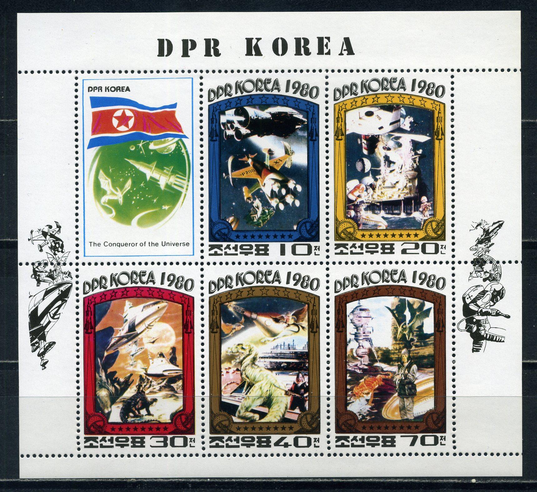 Почтовые марки. КНДР. 1980г. Космическая фантастика. МЛ. №2003-2007 (Mi: 12.00 Евро)