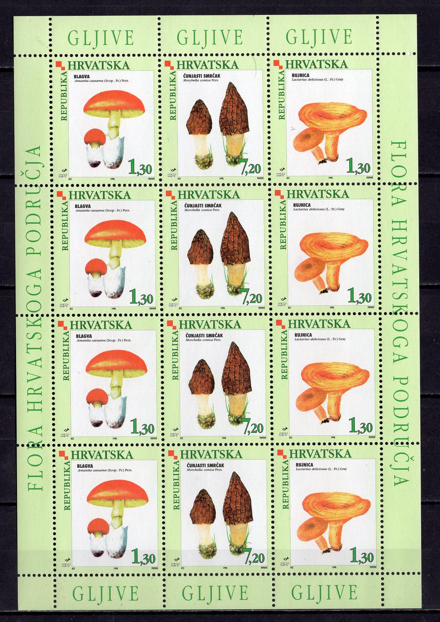 Почтовые марки. Хорватия, 1998 г. №454-456. Грибы. МЛ.