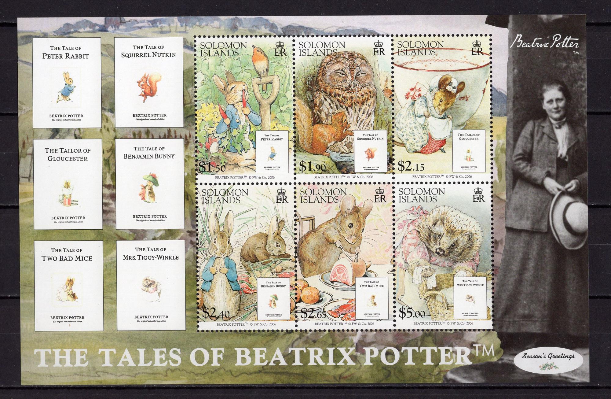 Почтовые марки. Соломоновы о-ва, 2006 г. MiNr. 1341 - 1346 МЛ. Детские рассказы Беатрикс Поттер.