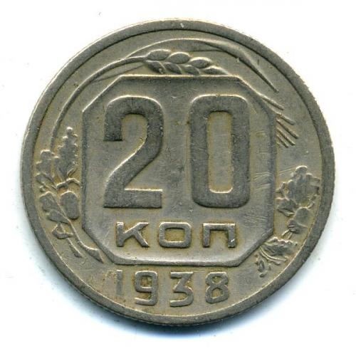 Монеты СССР. 20 копеек 1938 г.