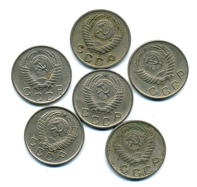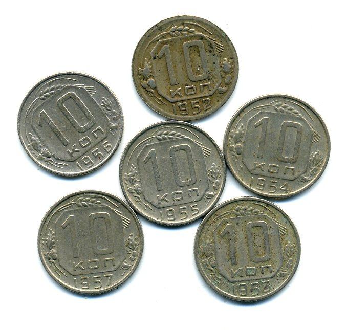 Монеты СССР. 10 копеек 1952-1957 г. 6 шт.