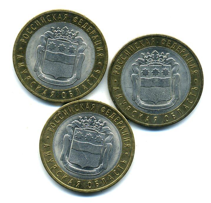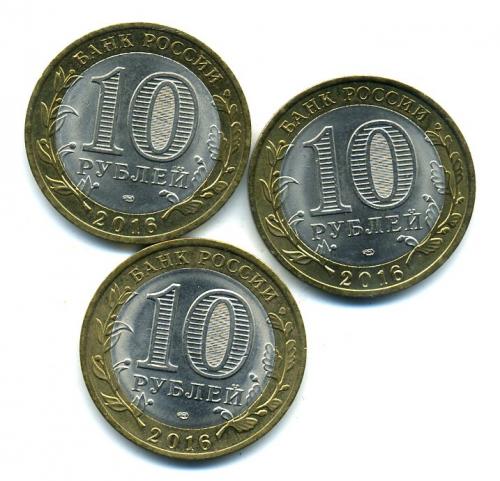 Монеты России. 10 рублей 2016 г. Амурская обл. 3 шт.