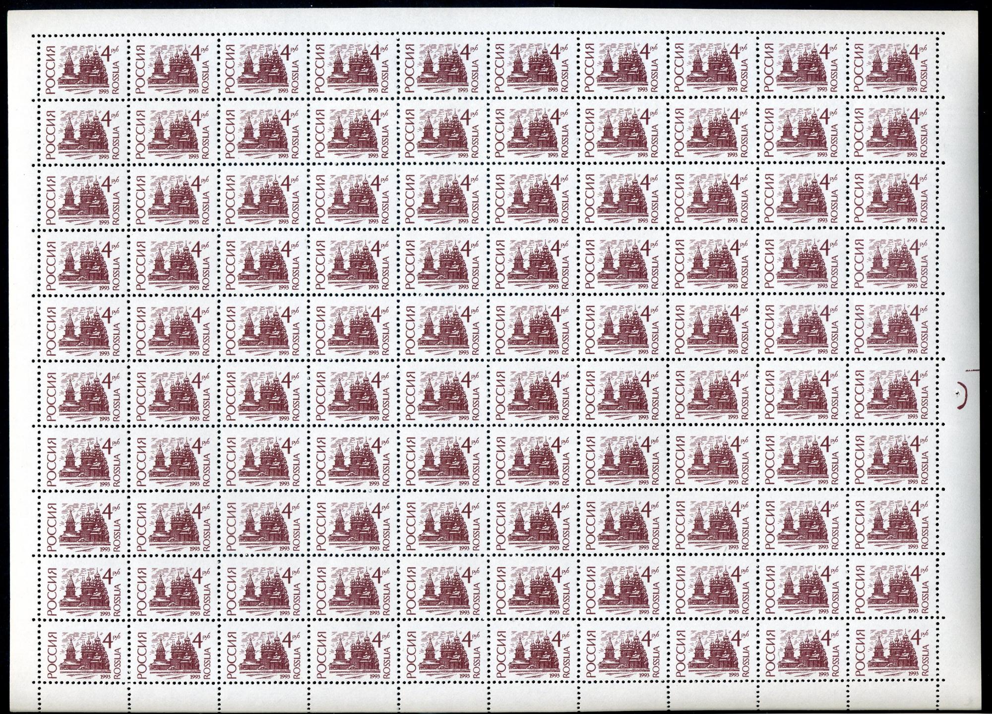 Почтовые марки. Россия 1993г. Стандарт. Простая бумага. №48(94). Лист. (кат. 40 руб/марка )