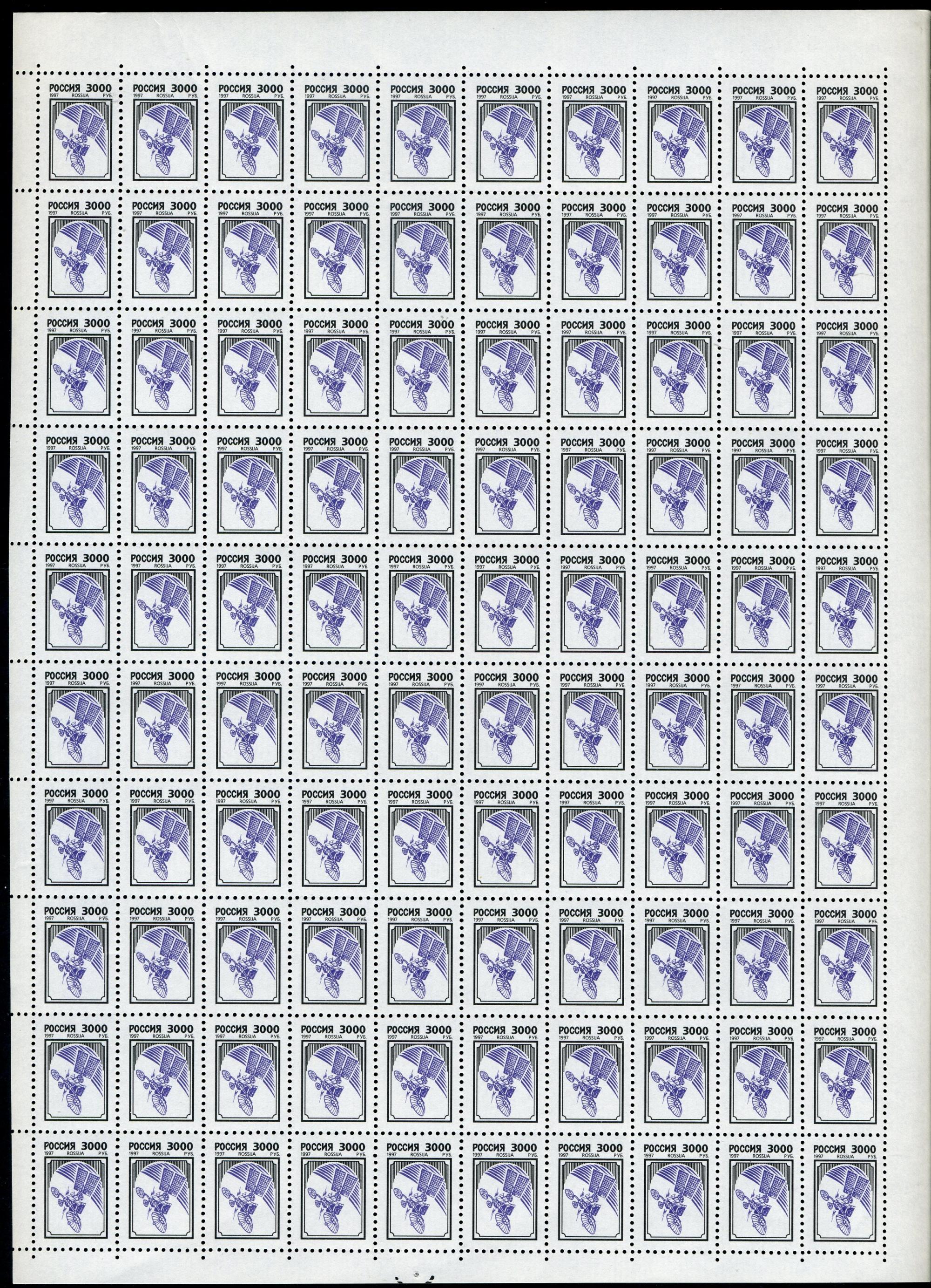 Почтовые марки. Россия 1997г. Стандарт. Простая бумага. №93(352-I). Лист. (Кат. С-К: 30000р.)