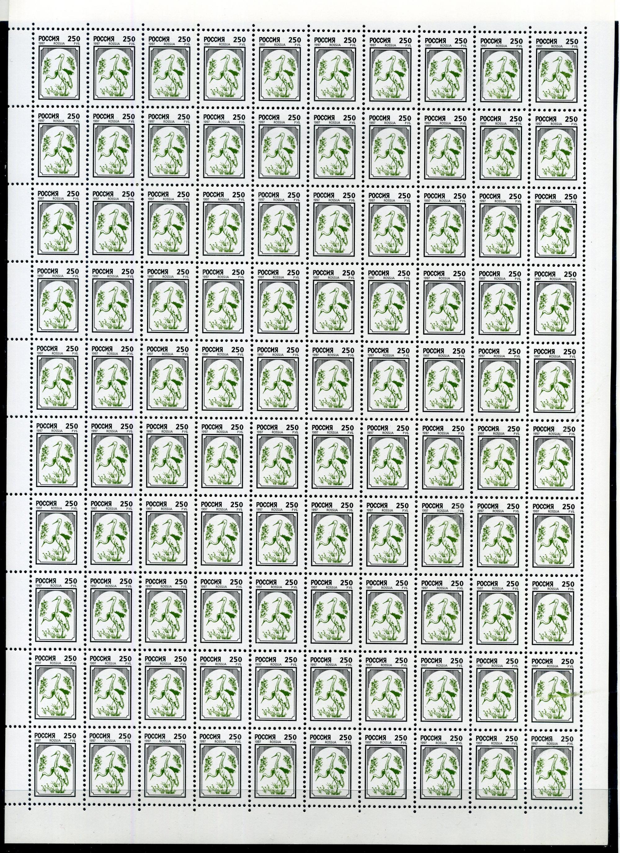 Почтовые марки. Россия. 1997г. Стандарт. Мел. бумага. №78(349). Лист. (Кат. С-К: 6000р.)
