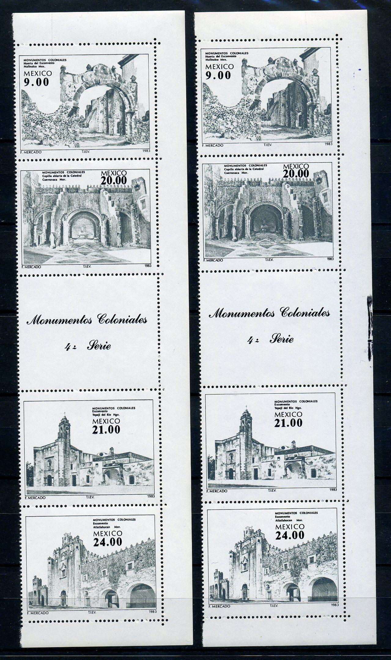 Почтовые марки. Мексика. 1983г. №1885-1888. Архитектура. РАЗНОВИДНОСТЬ (2 серии - тёмная и светлая).