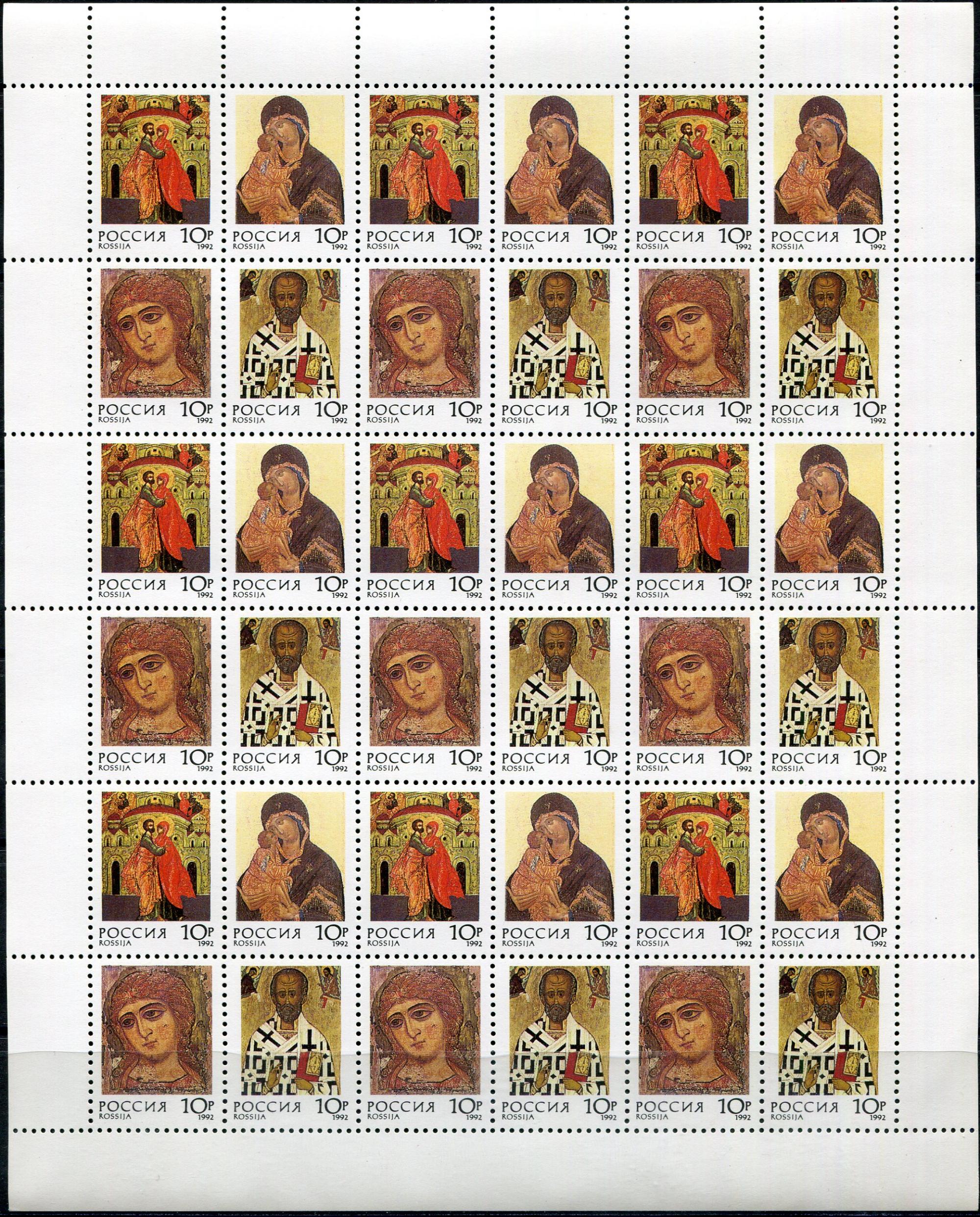 Почтовые марки. Россия. 1992г. Иконы. Совм. выпуск.
