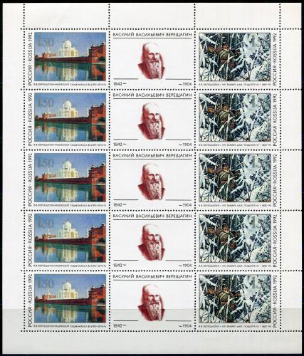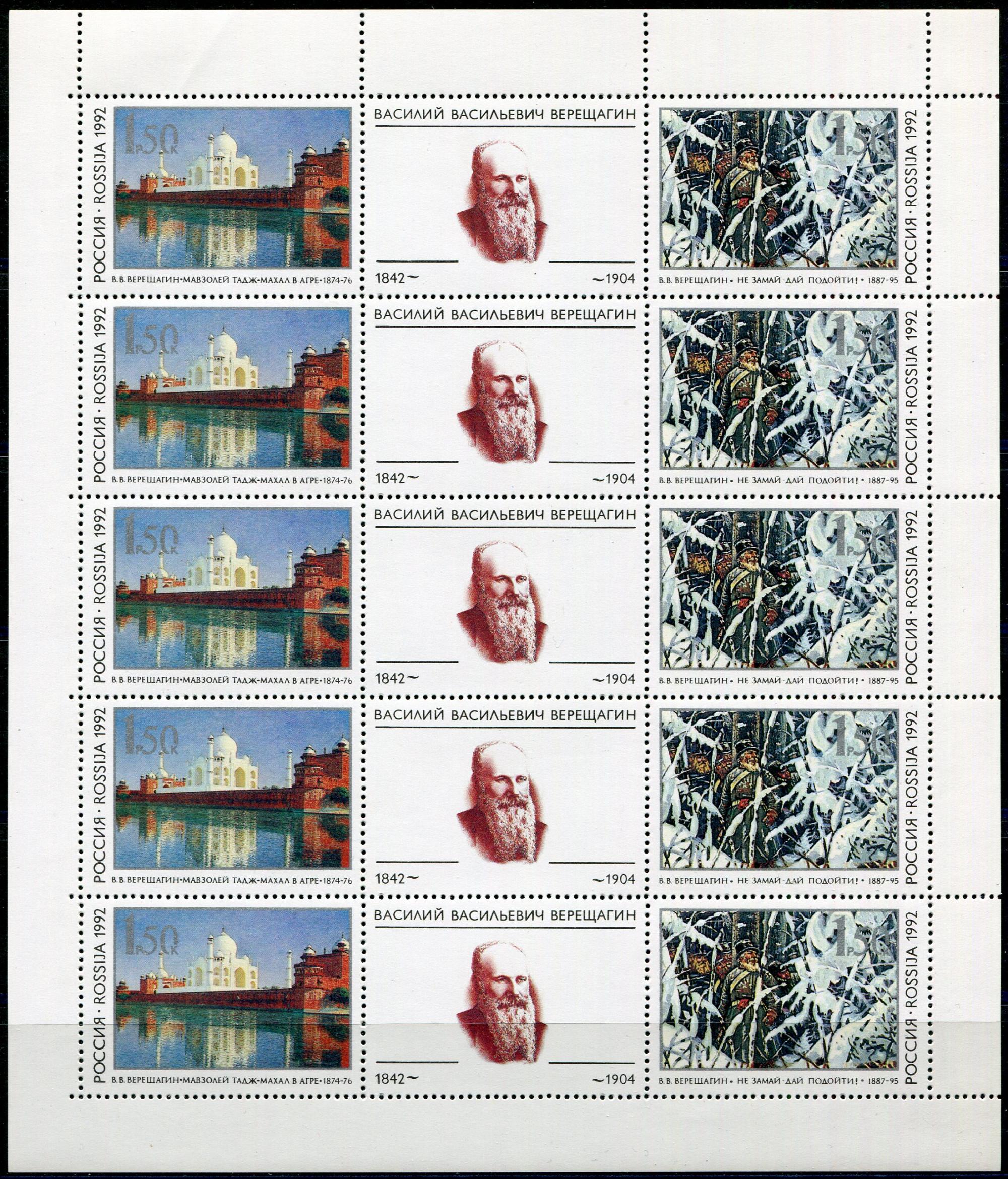 Почтовые марки. Россия. 1992г. Верещагин. Лист. №39-40.
