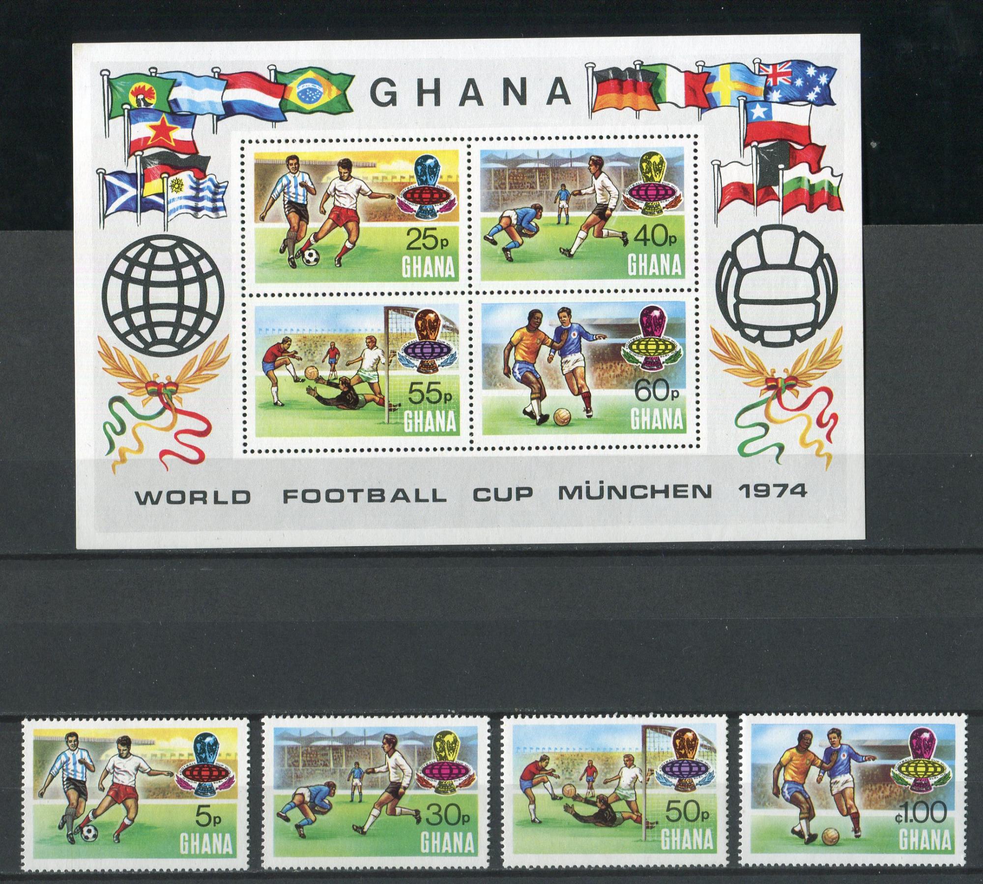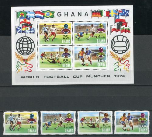 Почтовые марки. Гана, 1974 г. №564-567, Бл.57. Футбол.