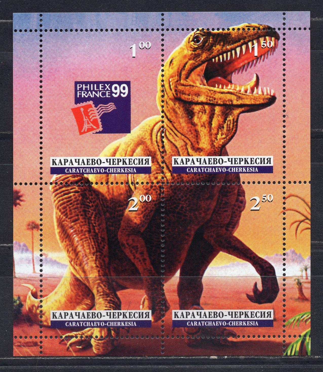 Почтовые марки. Карачаево-Черкесия. 1999. Филвыст. Динозавры (некатал.)