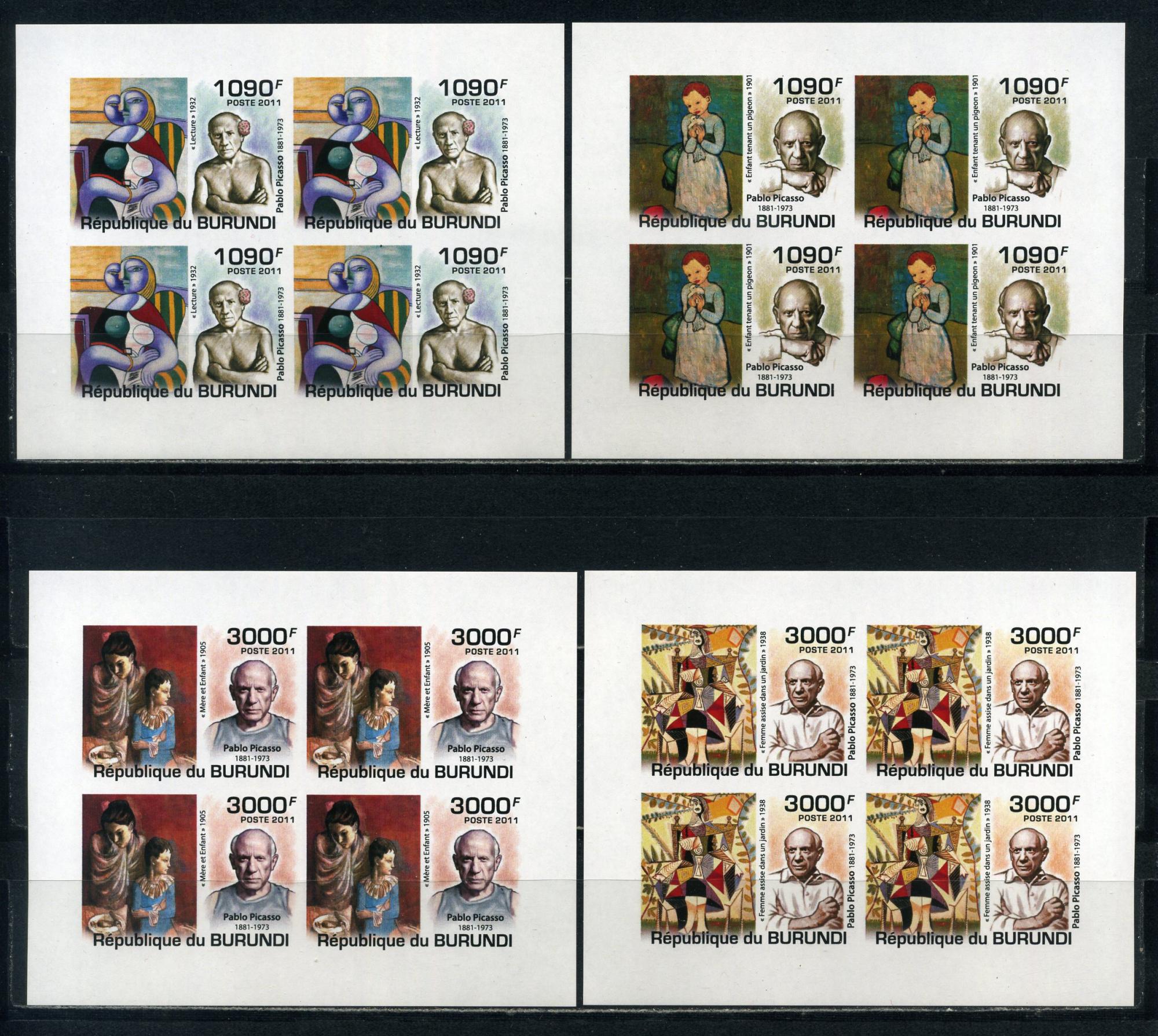 Почтовые марки. Бурунди 2011г. П. Пикассо. №2274В-2277В. Беззубц. МЛ.