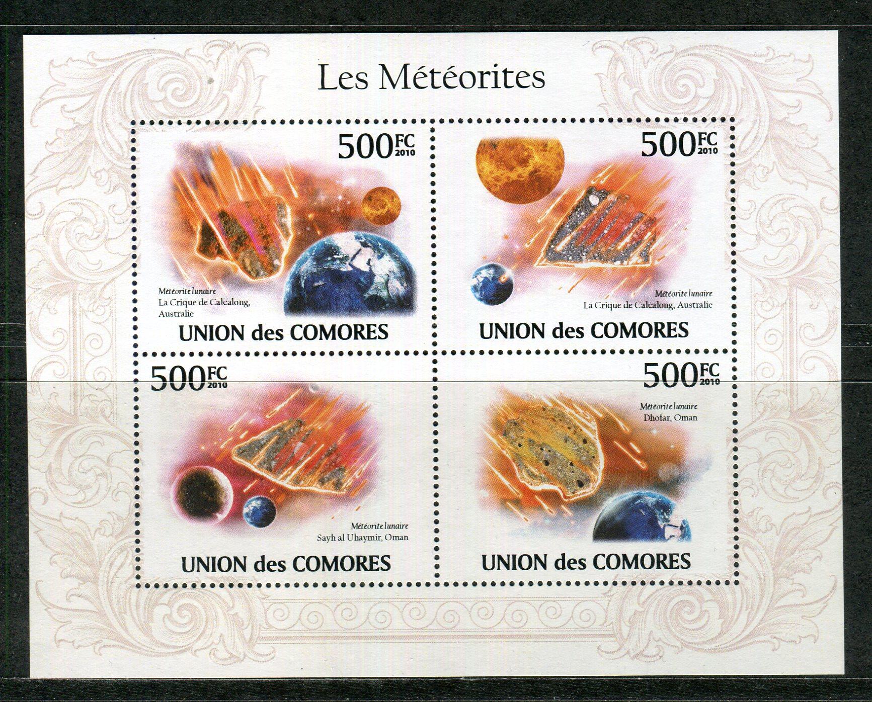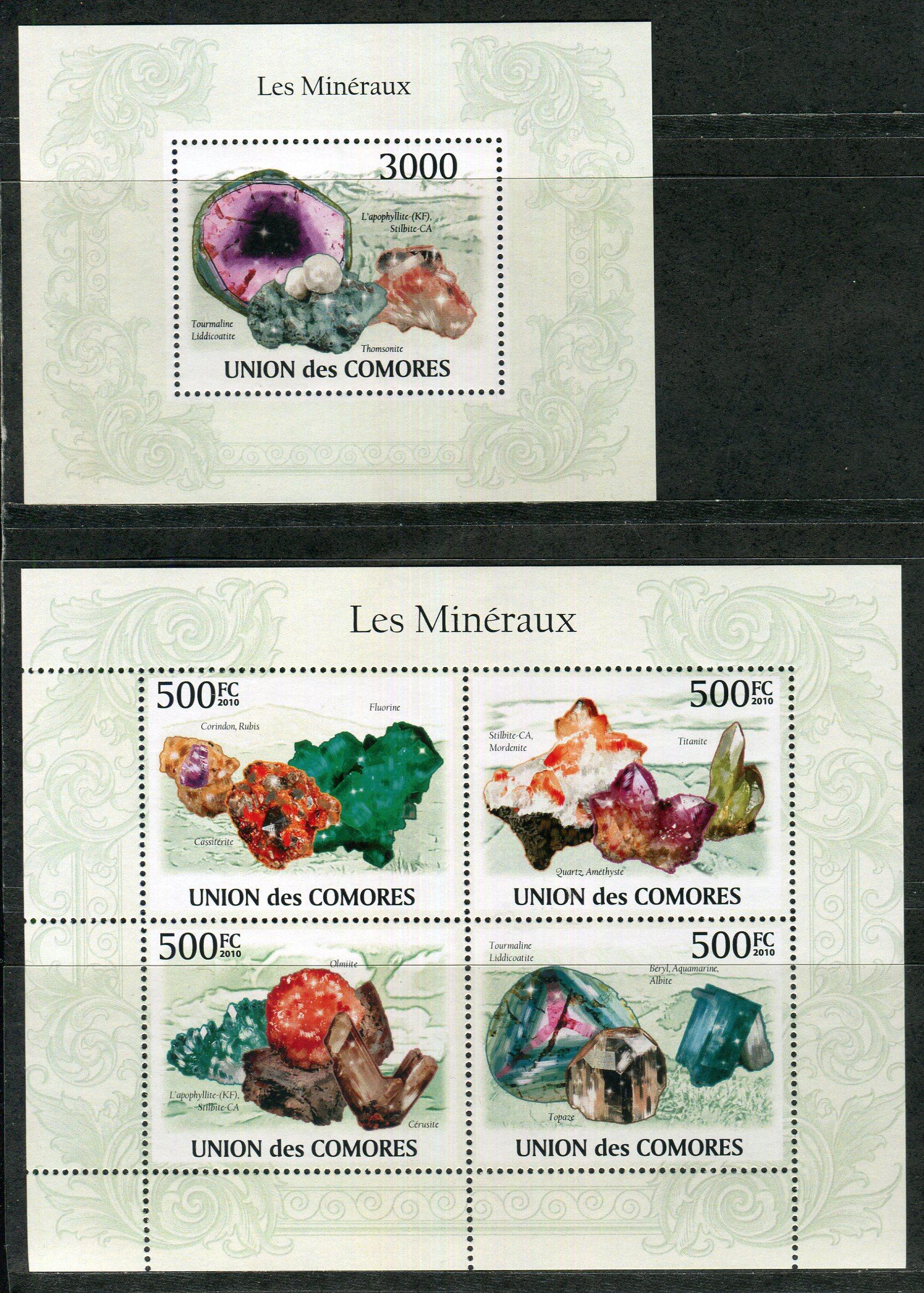 Почтовые марки. Коморы. 2009 г. Минералы. Космос. №2622-2625, №2632-2635, Блок №562.
