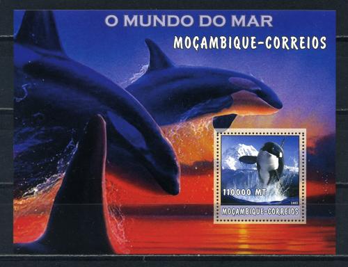 Почтовые марки. Мозамбик. 2002г. Морские млекопитающие. Блок №188.