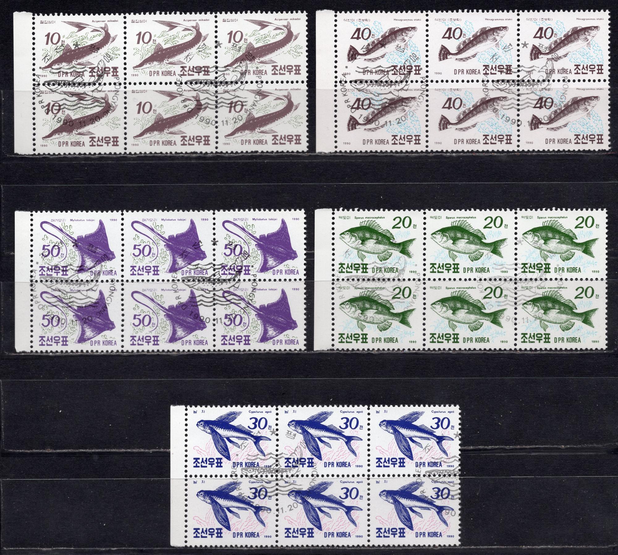 Почтовые марки. КНДР. 1990г. Рыбы. №3154-3158. Сцепки.