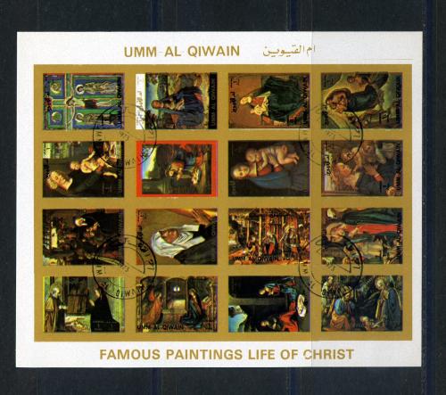 Почтовые марки. Умм-эль-Кайвайн 1972 г. Живопись. Жизнь Христа. № 986-1001В. Мини. Беззуб.