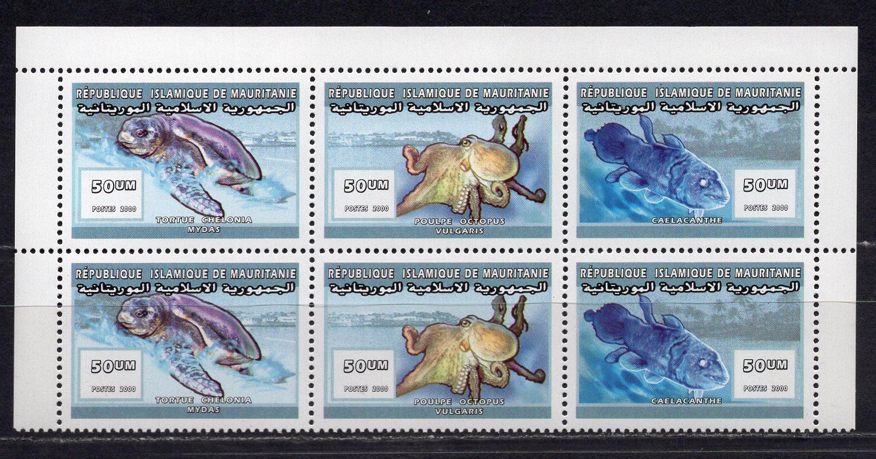 Почтовые марки. Мавритания, 2000 г. №1055а-1057а. Сцепка. Морская фауна.