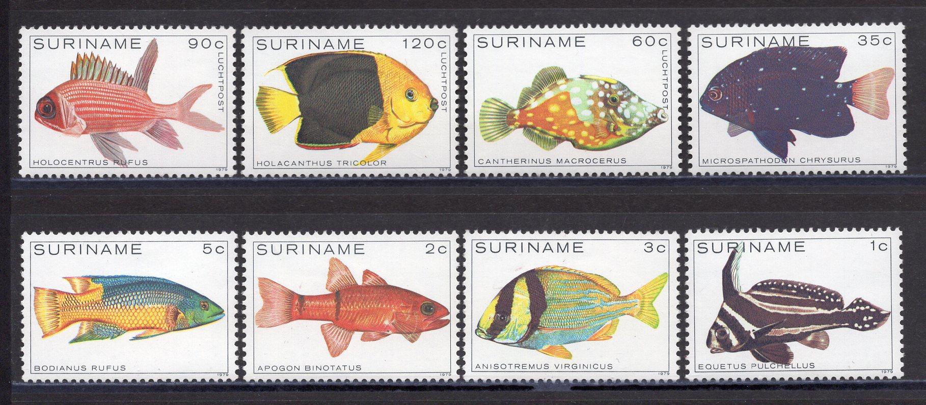 Почтовые марки. Суринам. 1979г. Рыбы. №869-876.