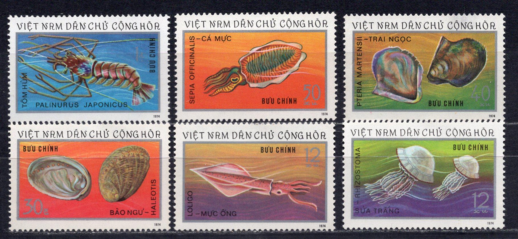 Почтовые марки. Вьетнам, 1974 г. №780-785. Морская фауна.