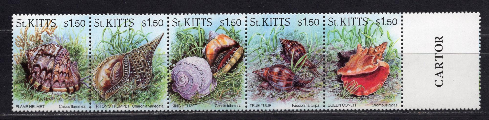 Почтовые марки. Сент-Китс, 1996 г. №415-419. Сцепка. Ракушки.
